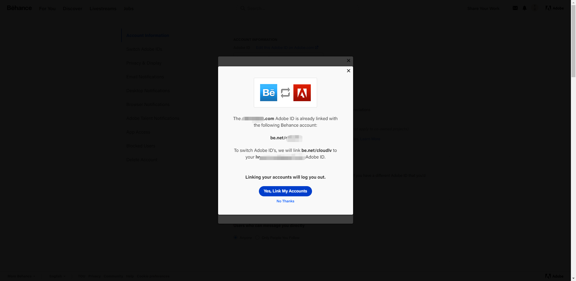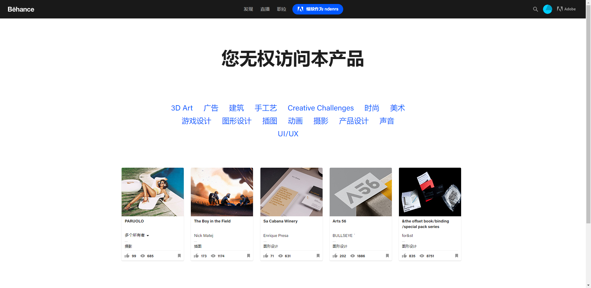 Behance被提示您无权访问本产品的最新解决办法(解决了转移账号一直转圈问题)。