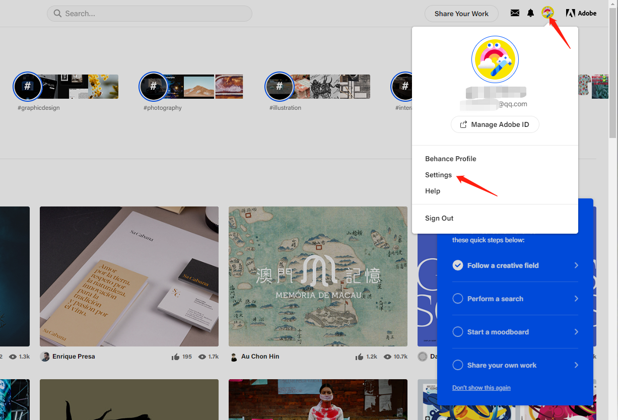 好了,操作完以上,你解决了能打开behance的问题,那接下来请看如何找回你以前behance的作品和情绪板的问题。