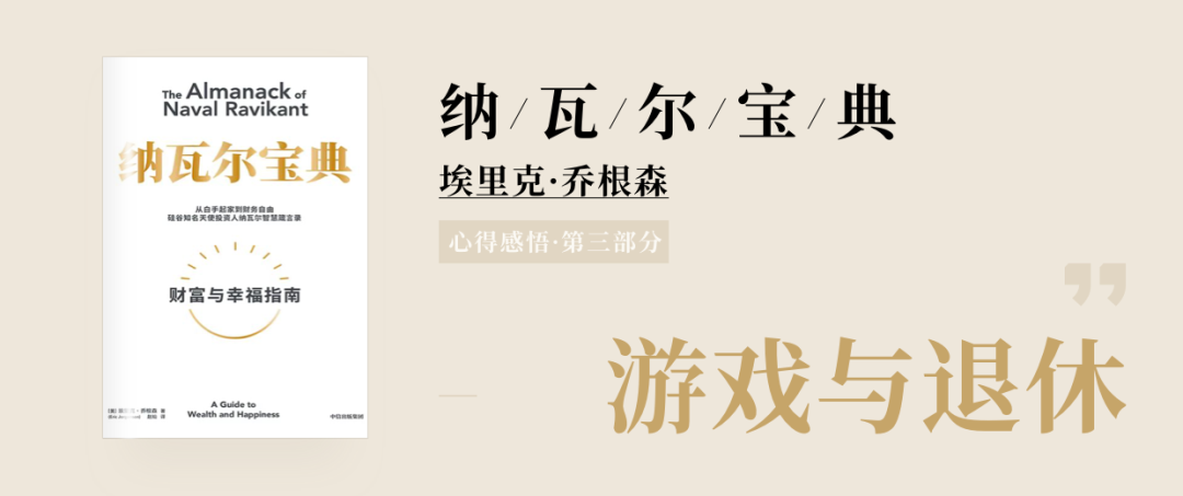 作家埃里克·乔根森整理汇编硅谷成功的创业者和天使投资人纳瓦尔的推文、谈话记录,最后经纳瓦尔首肯后正式出版。此书内容足够坦诚和自我,纳瓦尔的智慧箴言给我们带来启发“财富和幸福”原则和方法。