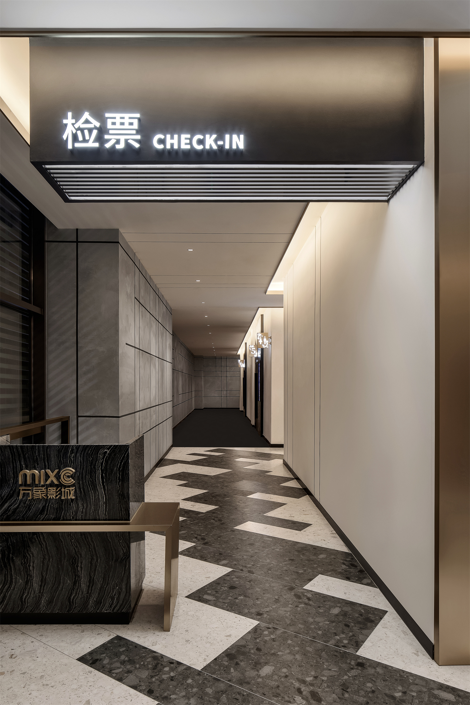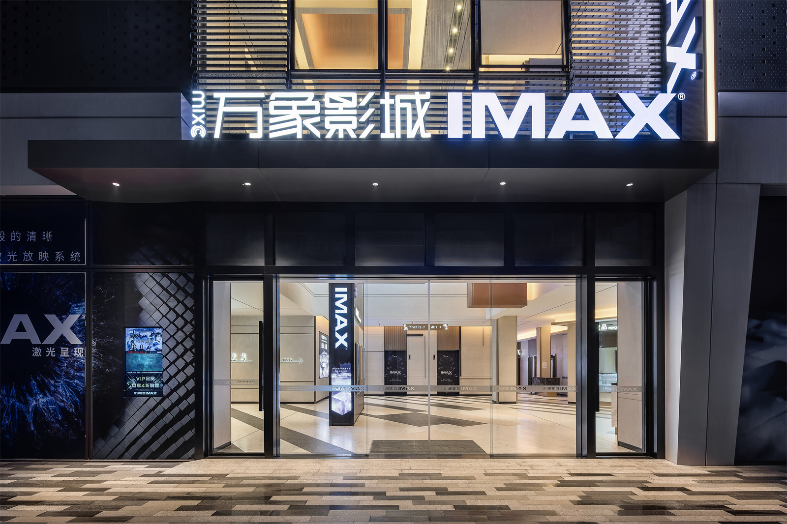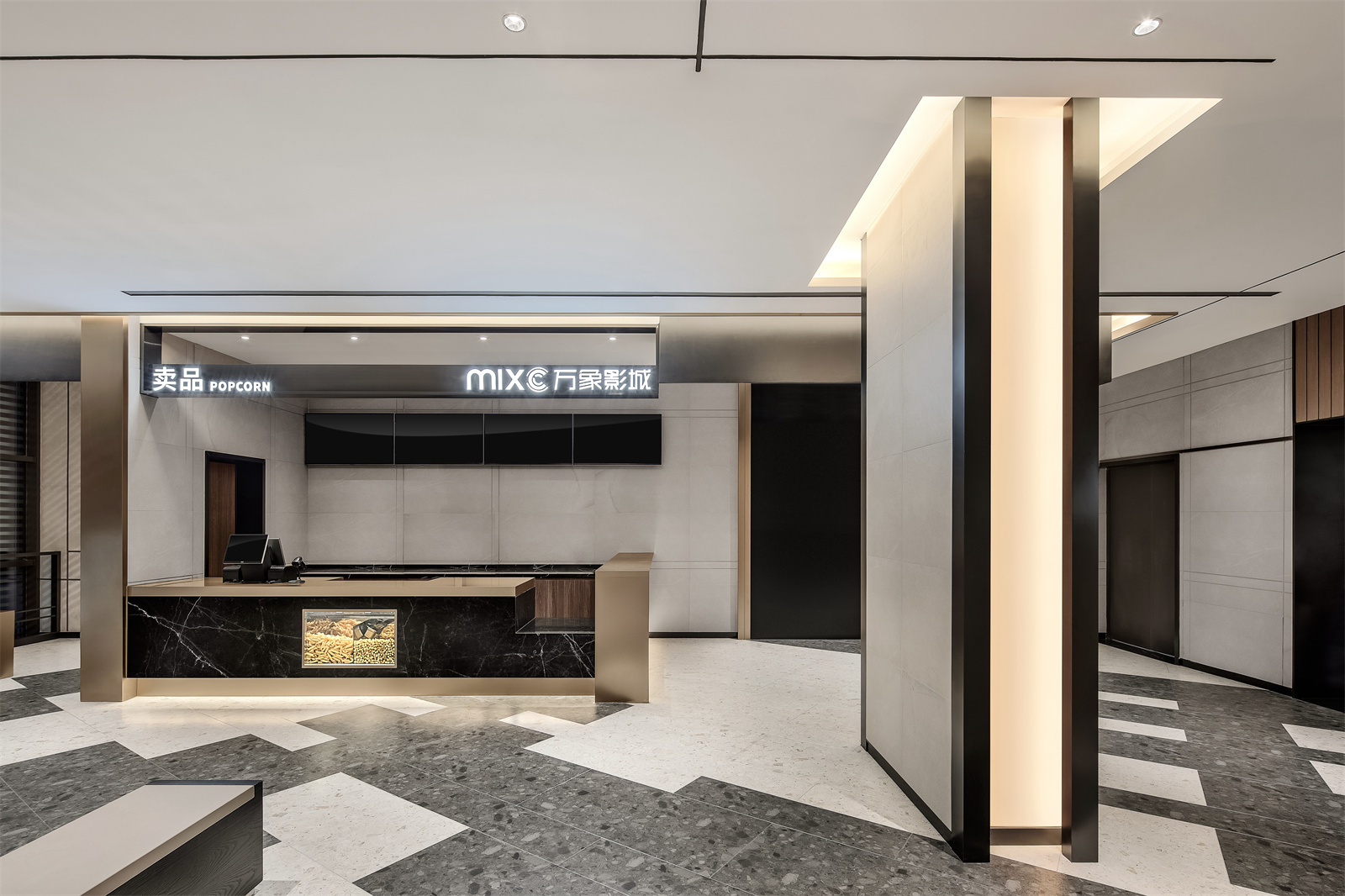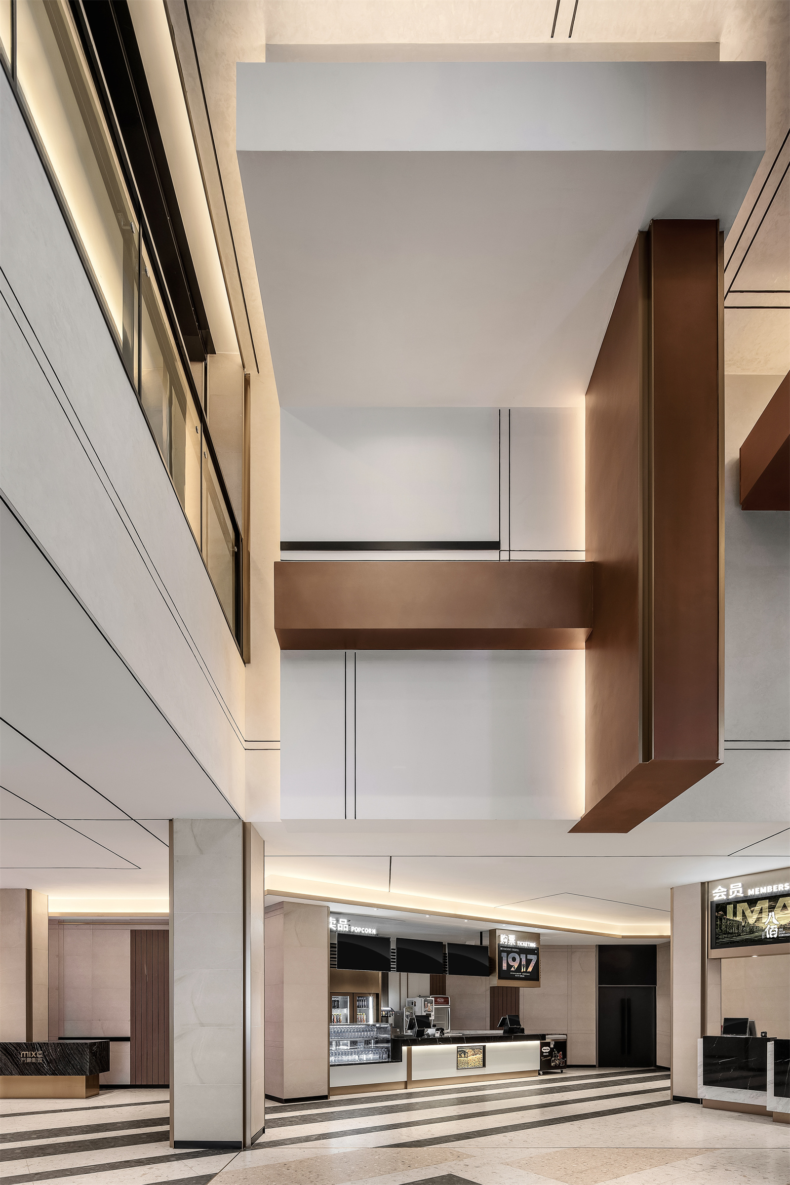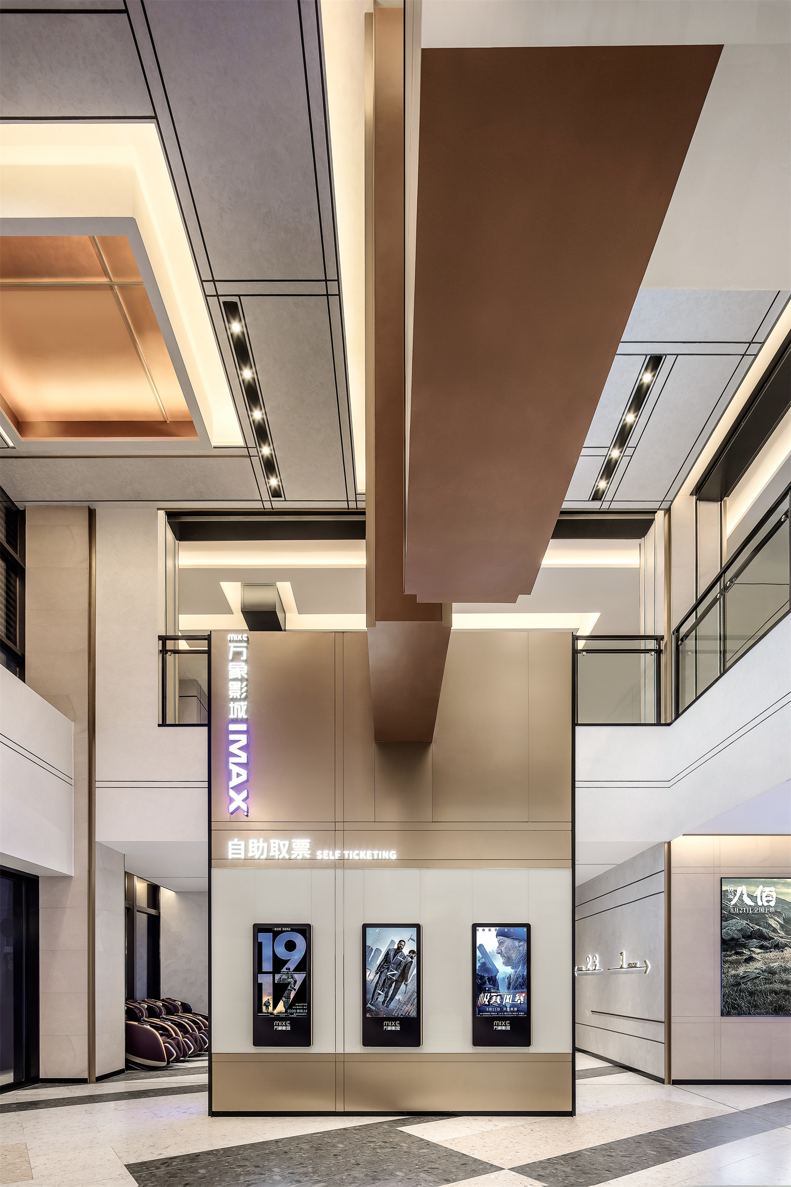 步入一楼,万象影城的LOGO出现在最醒目的方块上,强化品牌视觉。