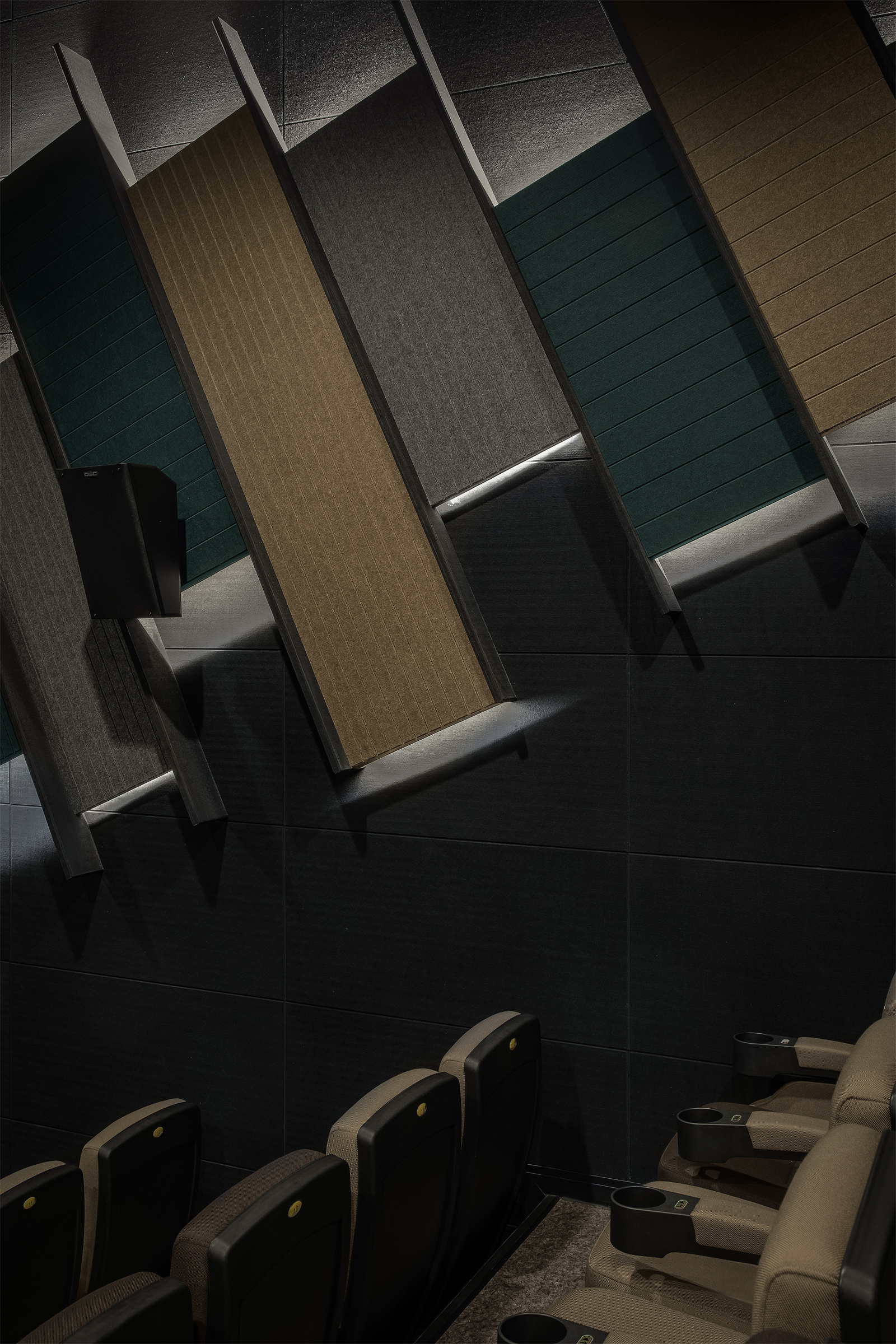 VIP休息室则充分体现了OFT在此次影院设计中关于重构秩序的思考,从铝条作为线的装饰,到铝板于天花上构筑出立体的体块,设计师仅仅用基础元素却形成丰富的视觉变化,让整个空间突破人们对于“秩序”的想象。