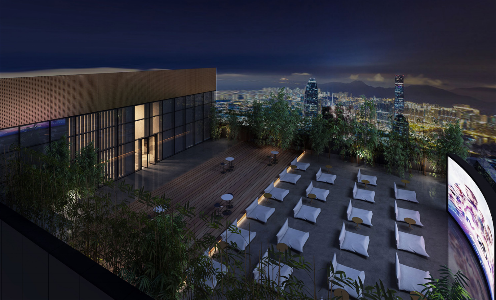 在这里,双人床代替座椅,城市的天台便成为只属于夜晚和电影的场所,拥着爱的人,还有星辰与风为伴,浪漫会是这里唯一的主题,故事穿过荧屏,在你身边发生。