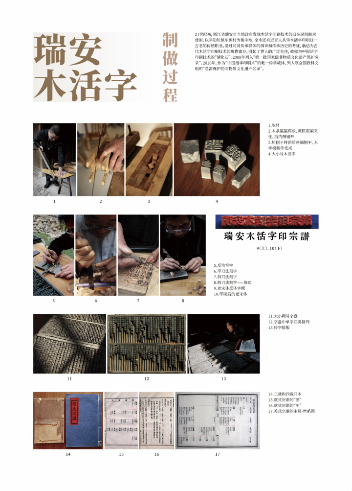 展览分为序和汉字设计的现代化之路两个大部分,序为:中国传统活版印刷开启文字设计大历史;展览主体分从现代印刷字体的萌芽、字体设计的自主开发、国家主导的字体设计、汉字开始进入信息时代、中国现代字体蓬勃发展和文字展现文化共同体等几个角度梳理了汉字设计的现代化之路。展览聚集了大量散落于海内外博物馆、图书馆的资料及国内外相关专家的珍藏的文献、档案、实物,通过出版物实物、展板、海报、多媒体等多种形式多层次的展现汉字发展的历程。