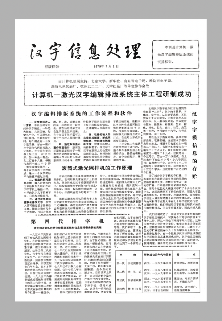 第四阶段-用汉字激光照排系统输出的第一张报纸样张《汉字信息处理》