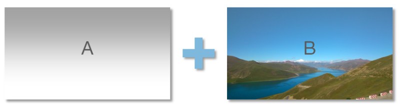 上面的例子可以视为渐变灰色的前景图A和背景图B的合成(图A的白色代表透明)。