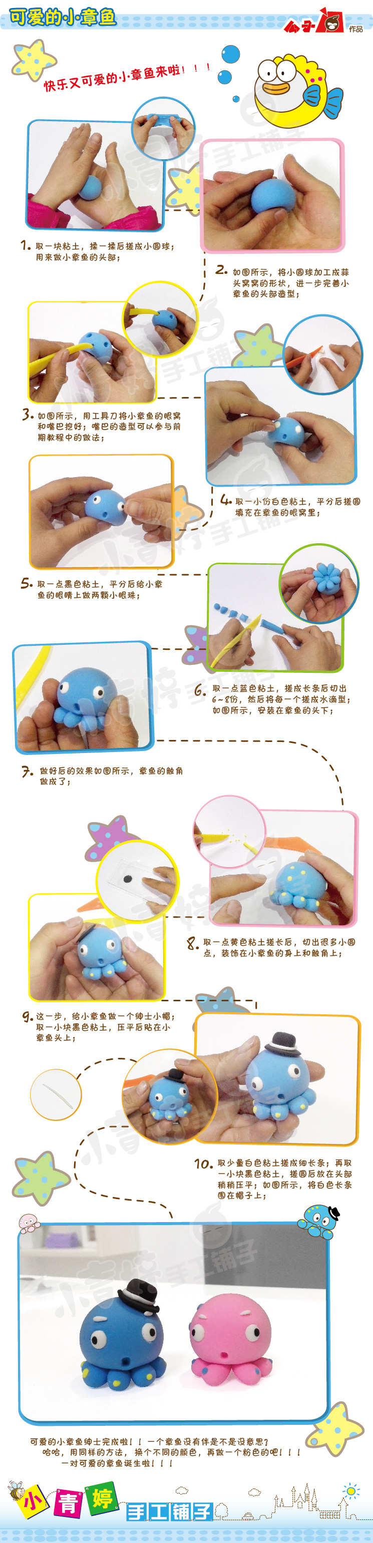 超轻粘土小动物的手工教程-可爱的小章鱼