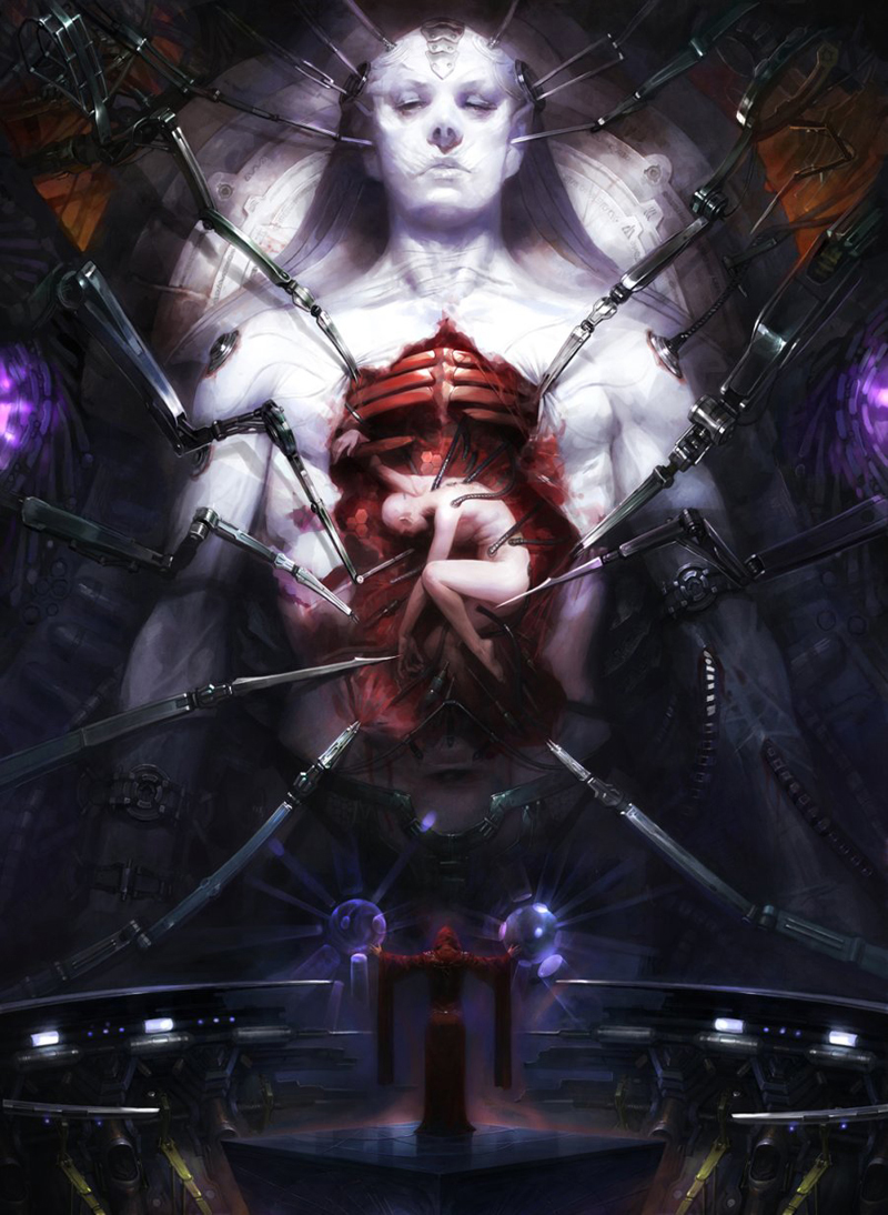 冯伟:每一个人的步骤都不太一样,我的习惯是先有感官刺激,先要有创作一个事物的欲望,然后再开始收集资料并在脑海中构思画面,紧接着用绘图板在电脑上勾勒出基本的构图动势,然后着色、刻画细节,渲染气氛,调整画面直到结束。在我看来CG最重要的阶段是初期搜集想法并汇总在脑中形成画面,在电脑上创意时能够准确清晰地还原自己的构思,这是我认为比较难的,也是需要特别留意的。