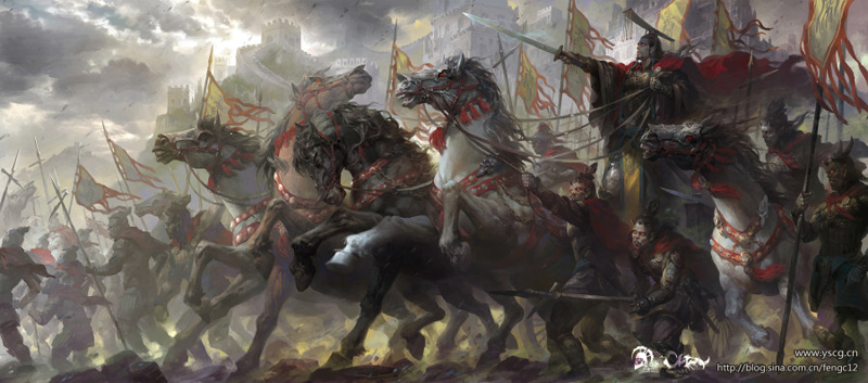 在KOEI我主要做的是《三国志》和《三国无双》的一些设定和海报。刚开始我在公司的3D场景组做一些模型、关卡和高模,后来转到2D原画组做些角色和场景的绘画。那5年我最大的收货是得到正确的绘画技术的引导,并且纠正了许多绘画的习惯,例如,我刚开始没有学习方法,常常一开始就想解决所有的绘画问题,素描关系,色彩关系,造型比例等等,我完全摸不到头脑,一股脑的带着所有的问题去画,最终什么都没解决好。得到了专业的引导后,懂得了压力要一部分一部分地去化解,分流程去解决绘画中各个环节中的问题,慢慢找到了方法。并且公司里有些前辈画得非常不错,他们的个人绘画习惯也影响了我。