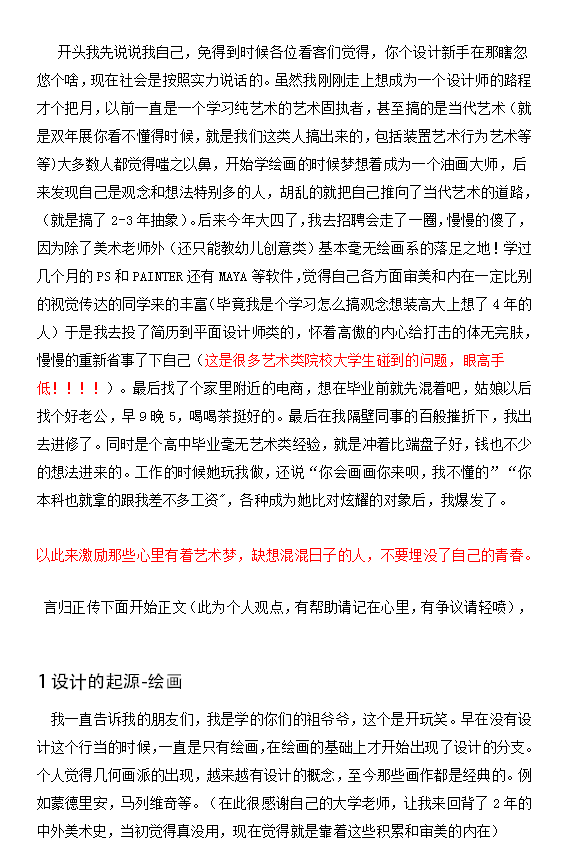 虽然自己也是个初出茅庐的新手,但是因为学习了6-7年的艺术,在有身边的人用怀疑的眼神看着我说,再爆出一句“手绘有什么用?PS里找点素材拼一拼,打点字就好了,浪费时间去练!”每当这时候我总有很多话想说,想写这样的文章,让大家了解下手绘与设计。