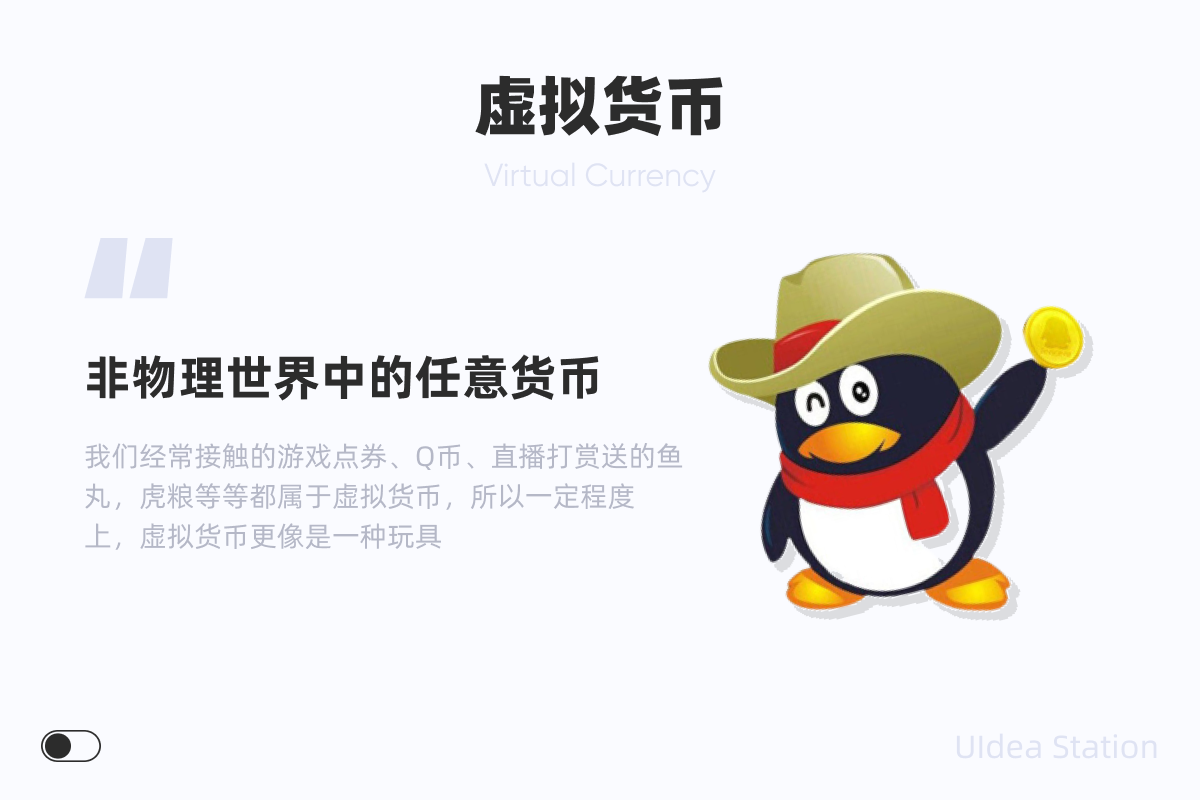 虚拟货币是这三个之中范围最广的一种货币,通俗来讲就是不处于物理世界中的任意一种货币都可以被称之为虚拟货币,也很好理解,比如我们经常接触的游戏点券、Q币、直播打赏送的鱼丸,虎粮等等都属于虚拟货币,所以一定程度上,虚拟货币更像是一种玩具。但是前面说过,虚拟货币的范围是最广的,所以他也可以表示加密货币和数字货币等虚拟的货币。