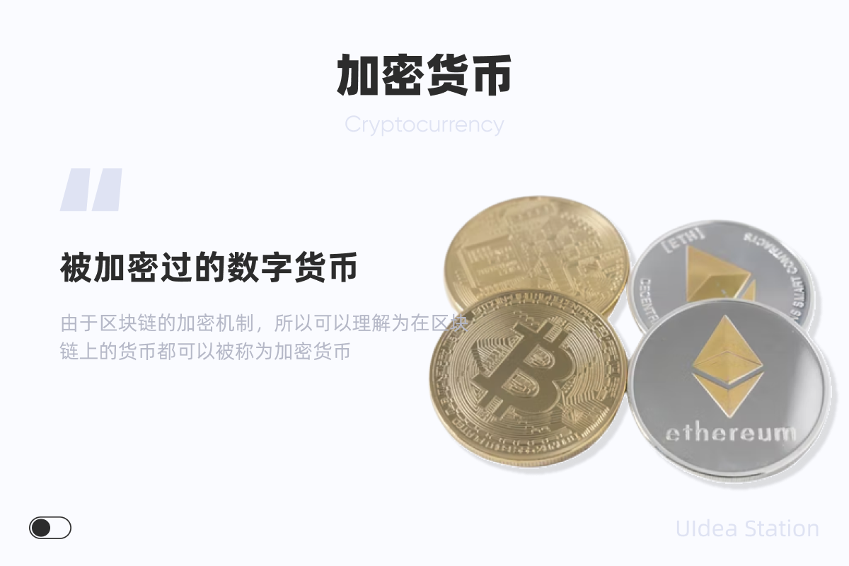 加密货币就是一种被加密过的数字货币,所以称做他们为加密数字货币则更为准确,不过为了方便,我们更习惯称他们为加密货币,目前最为流通的就是以比特币和以太坊为代表的加密货币,前面我们提到了区块链是由不同的区块以一定的密码学机制加密行程的链式结构,那么这种技术其实就是一种加密的技术,所以可以理解为在区块链上的货币都可以被称为加密货币,而加密货币也是我们接下来去讨论的重点之一。