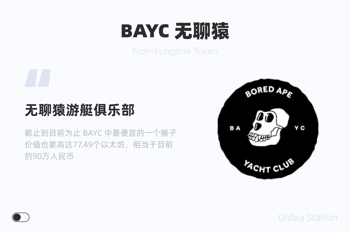 那么 NFT 究竟是什么呢?简单来说,NFT 就是一串代码,不过被加了一个不可被替代的 BUFF ,所以能够在虚拟世界甚至是现实世界中赋予一件事物超出常识的价值,NBA 篮球巨星 - 斯蒂芬·库里就曾花费18万美元购买了一个猴子的 NFT 用作他个人的 Twitter 头像,这也引发了越来越多人对于 NFT 以及 Web 3 的好奇,自以太坊诞生以来,就不断的有一些 PHP(用户个人头像)类的 NFT 推出,比较有影响力的就有加密朋克系列(CryptoPunks),以及上面库里所购买的无聊猿系列(BAYC)等等,这两个也都是10K的项目(10000张),截止到目前为止 BAYC 中最便宜的一个猴子价值也要高达77.49个以太坊,相当于目前的90万人民币。