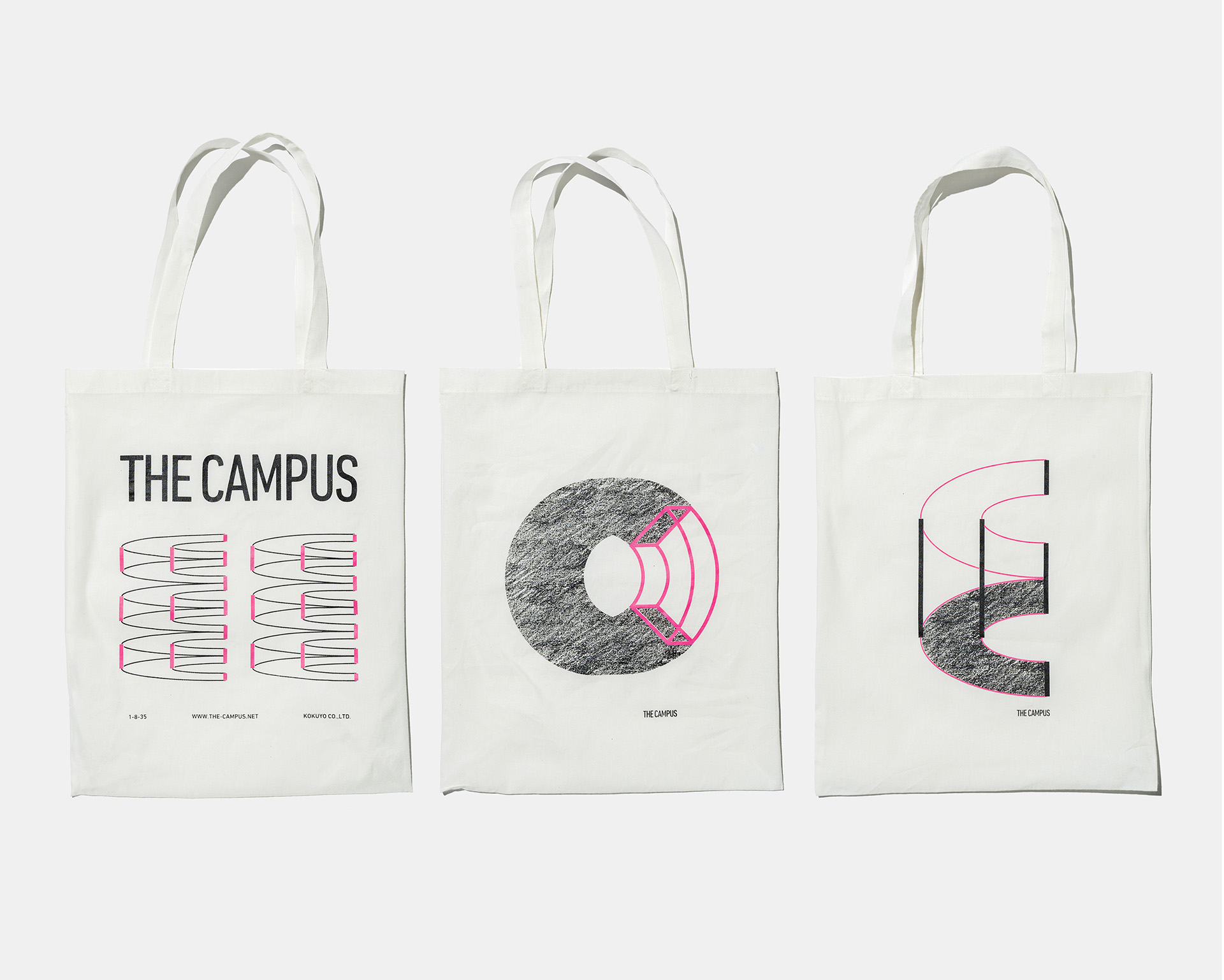 除了THE CAMPUS系列产品设计之外,THE CAMPUS网页也统一沿用红粉与灰白色调,用点、线、面的方式传达该空间的配置,严谨实用之中又透着活泼的视觉设计。