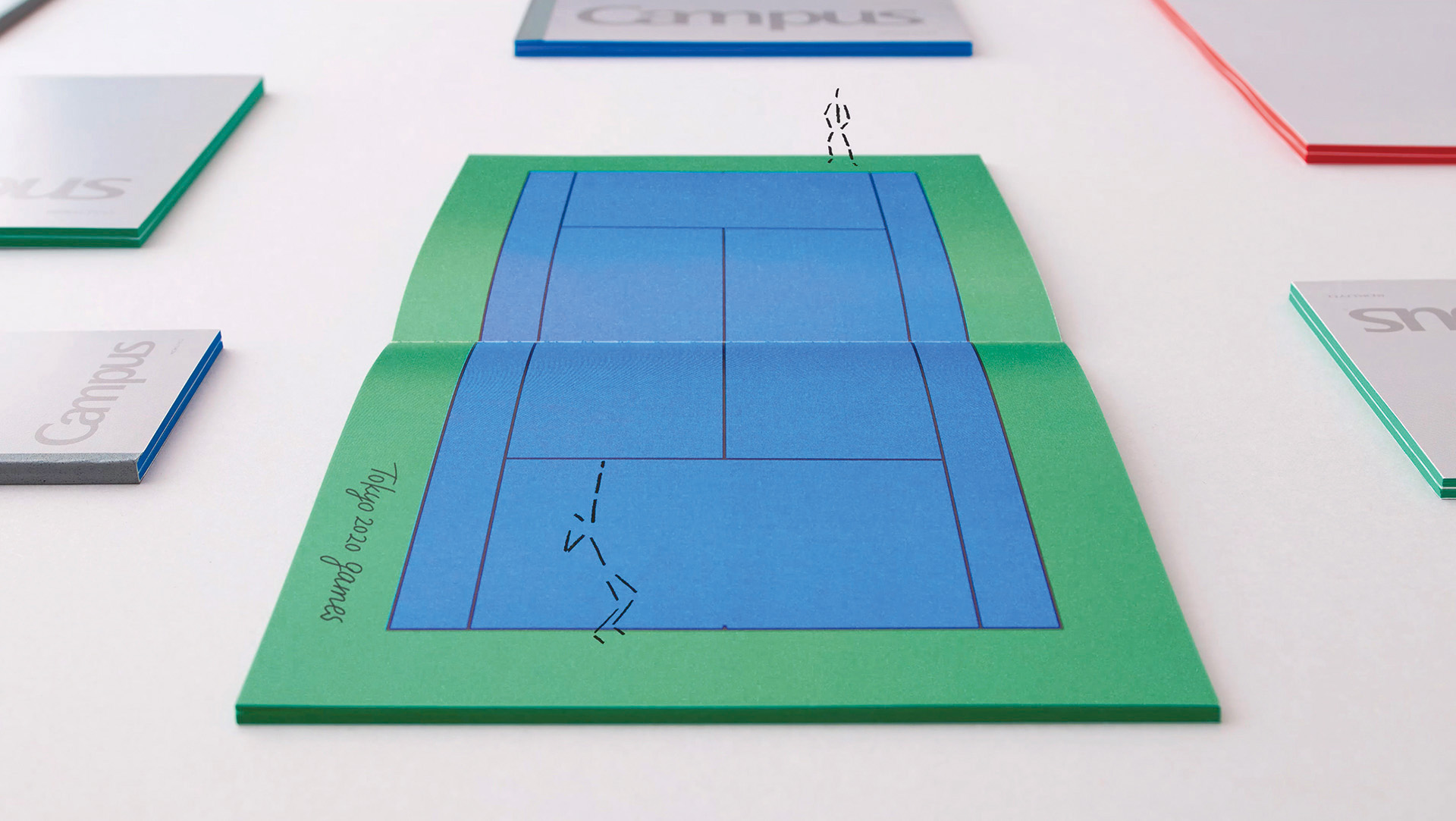 名为“让我们在东京翻开新的一页”是Campus笔记本的新策划,佐佐木拓在笔记本内页将几何图形与大面积纯色结合,打造出日常生活中不同场地的即视感,比如篮球场、足球场等。让在东京工作打拼的人们一翻开笔记本都能充满活力面对新的一天。