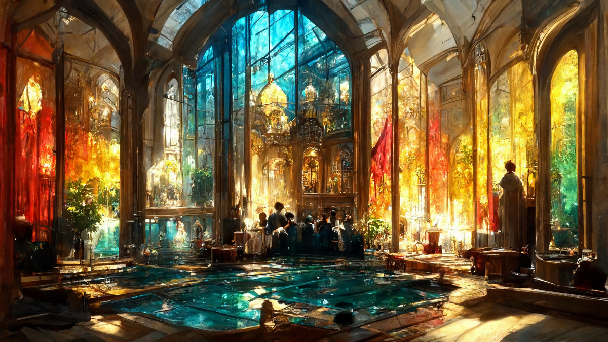 这科技究竟对产业的工作有没有帮助呢?一名叫做saintwindy的艺术家,他做出了实测,因为他平常创作出来的作品就像Disco Diffusion一样,就是要创造这种概念设计图,那可能是给游戏场景或者给电影场景用的概念图形,假设这些工具可以这样自动生成艺术品,那其实对他的工作会有很大的帮助。所以他就开始尝试利用这些工具输入一些关键词,然后经过几次的专业尝试,他得出了一些结论。