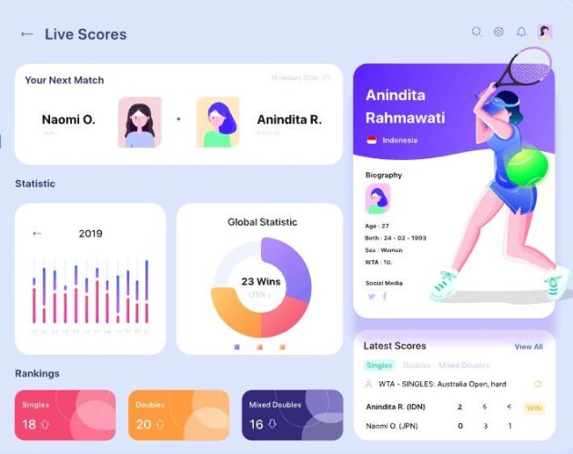 下面,我们以Pixso资源社区“网球运动数据可视化”为案例,带大家深入剖析数据可视化UI设计。通常来说,数据的呈现大多以饼状图、柱状图、仪表盘等形式呈现,而在设计的过程中,如何清晰的呈现数据信息,素材元素如何高效获取,成为设计师关心的问题,而Pixso成为很多设计师的优选方案。