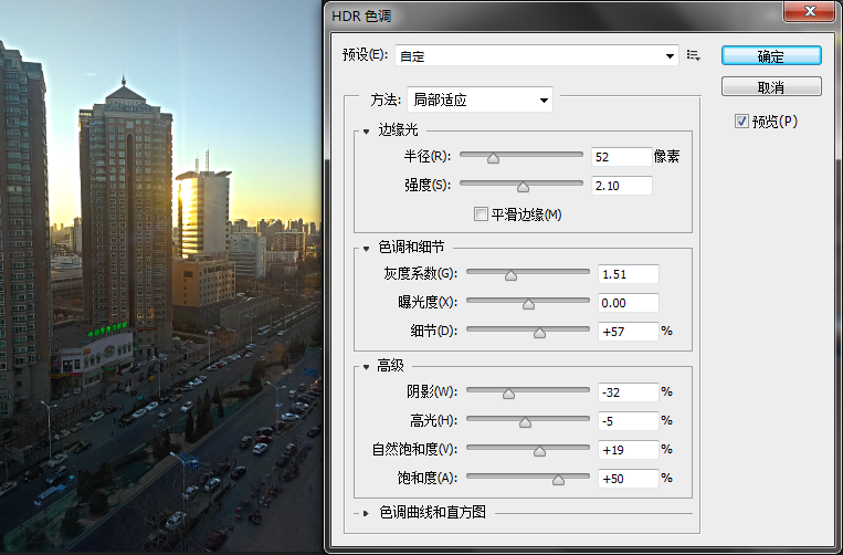 (其实上面示例里我调得有点过了,中间的大厦的尖顶都能看到光晕。。。后来重新调了一下好了,但是我把新参数搞丢了。。。就不上截图了。。。)