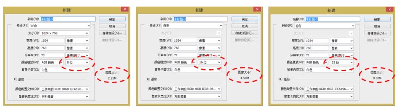 如果用PS画插画,用8位深度。修照片,用16位深度。处理HDR图片,用32位深度。