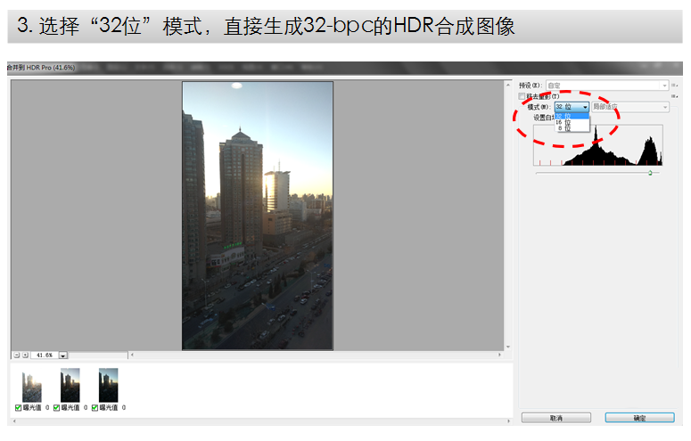 下一步,把32-bpc图像转换成8-bpc的图像的过程,就是一个挑选的过程。这时,PS会保留你需要的细节,同时扔掉那些不再需要的。