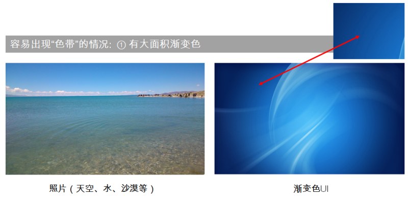1. 有渐变颜色的地方,特别容易出现“色带”。
