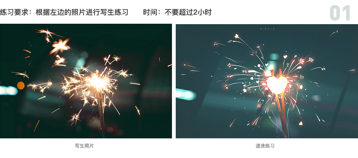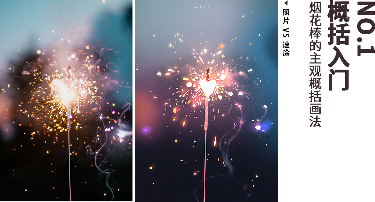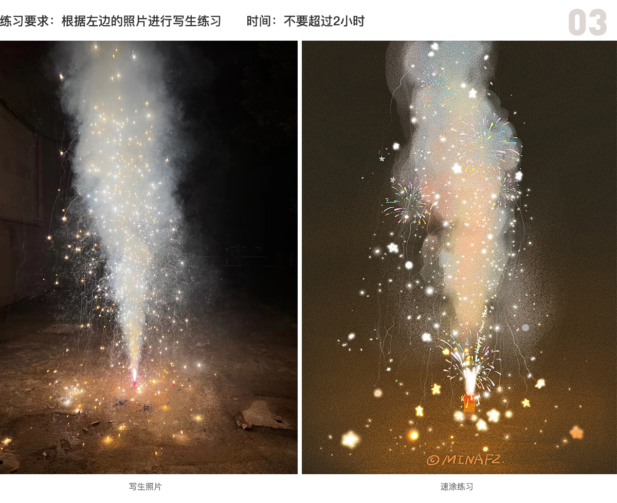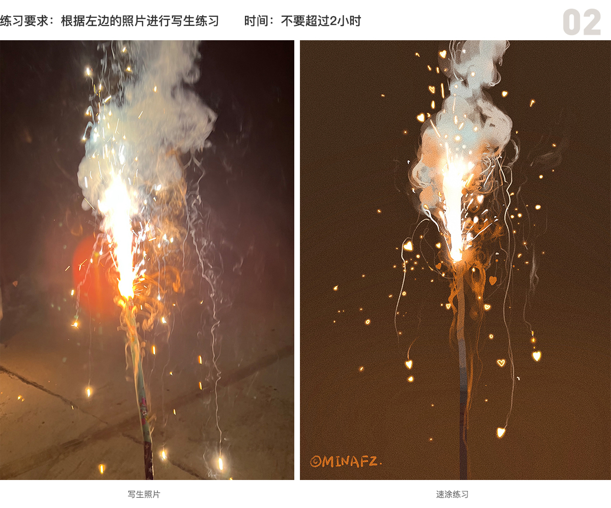 小提示:从整体出发,火花不用按照片全部画下来,只要飞溅出去的是有节奏对比的就会好看。