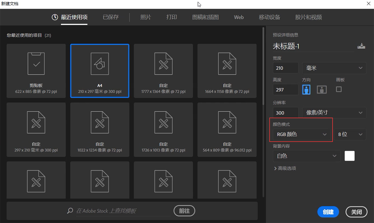 注意颜色模式选:RGB颜色