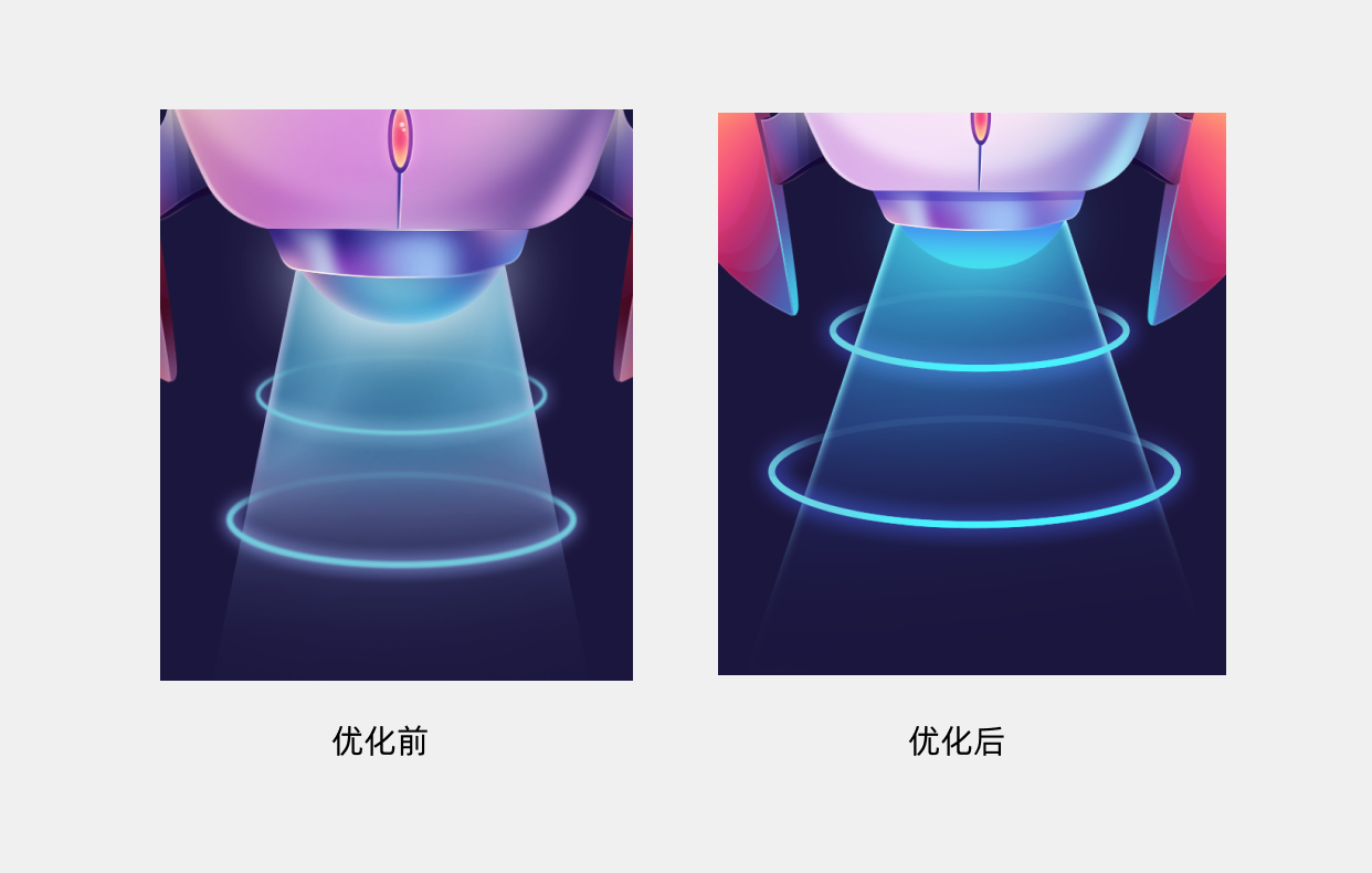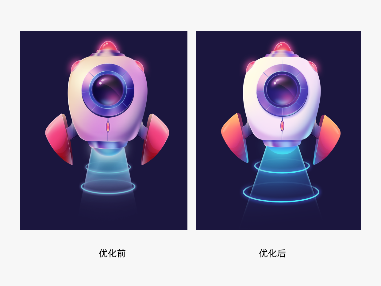 我们再来看火箭底部发射光圈的前后优化对比:
