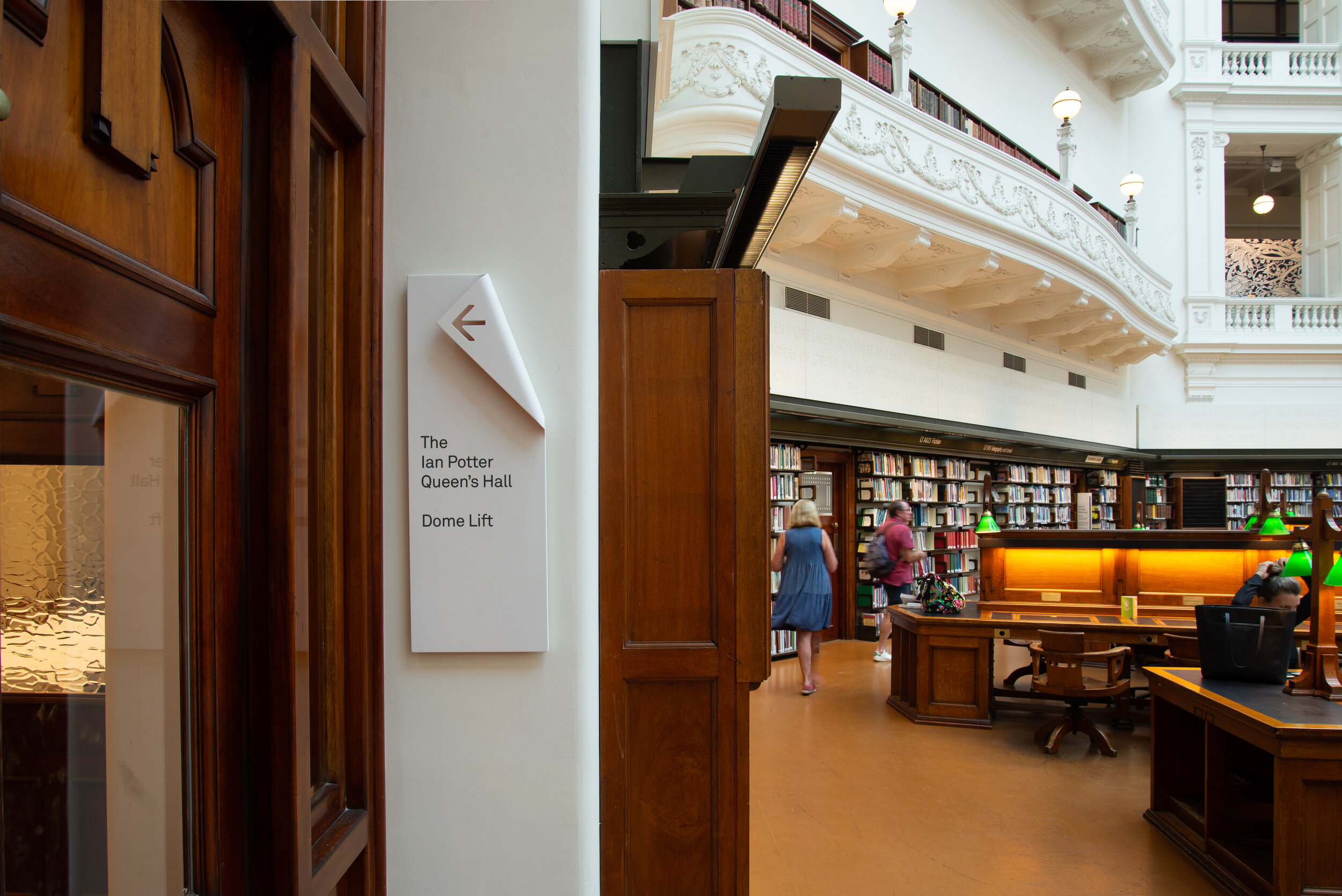 维多利亚州立图书馆位于澳大利亚维多利亚州墨尔本市中心,成立于1854年,1856年开放,拥有藏书200万册,2018年经过重建后,可供公众使用的总面积增加了 40%,座位增加了 70%。Id实验室受邀为其进行导视系统设计。