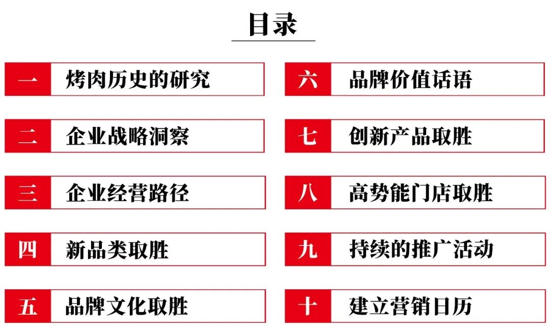 要有“品类”思维,而不是“品种思维”;品类价值是用购买理由来建立的,在品类价值中寻找品种价值,把这个品种价值具体成我们的购买理由,让它成为这个行业中的新类别,就可以赢得解释权,就拥有了话语权。烤肉市场缺乏烤牛肉专门店,而牛肉消费在逐年增长!
