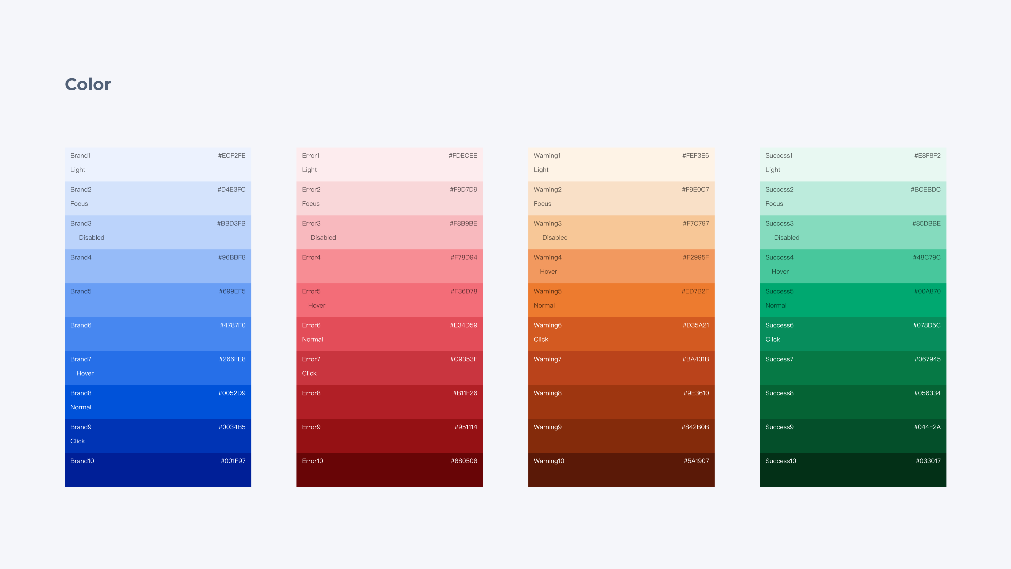 颜色样式同上述方式一样,罗列出在产品中使用的颜色,并对其进行分类和命名。
