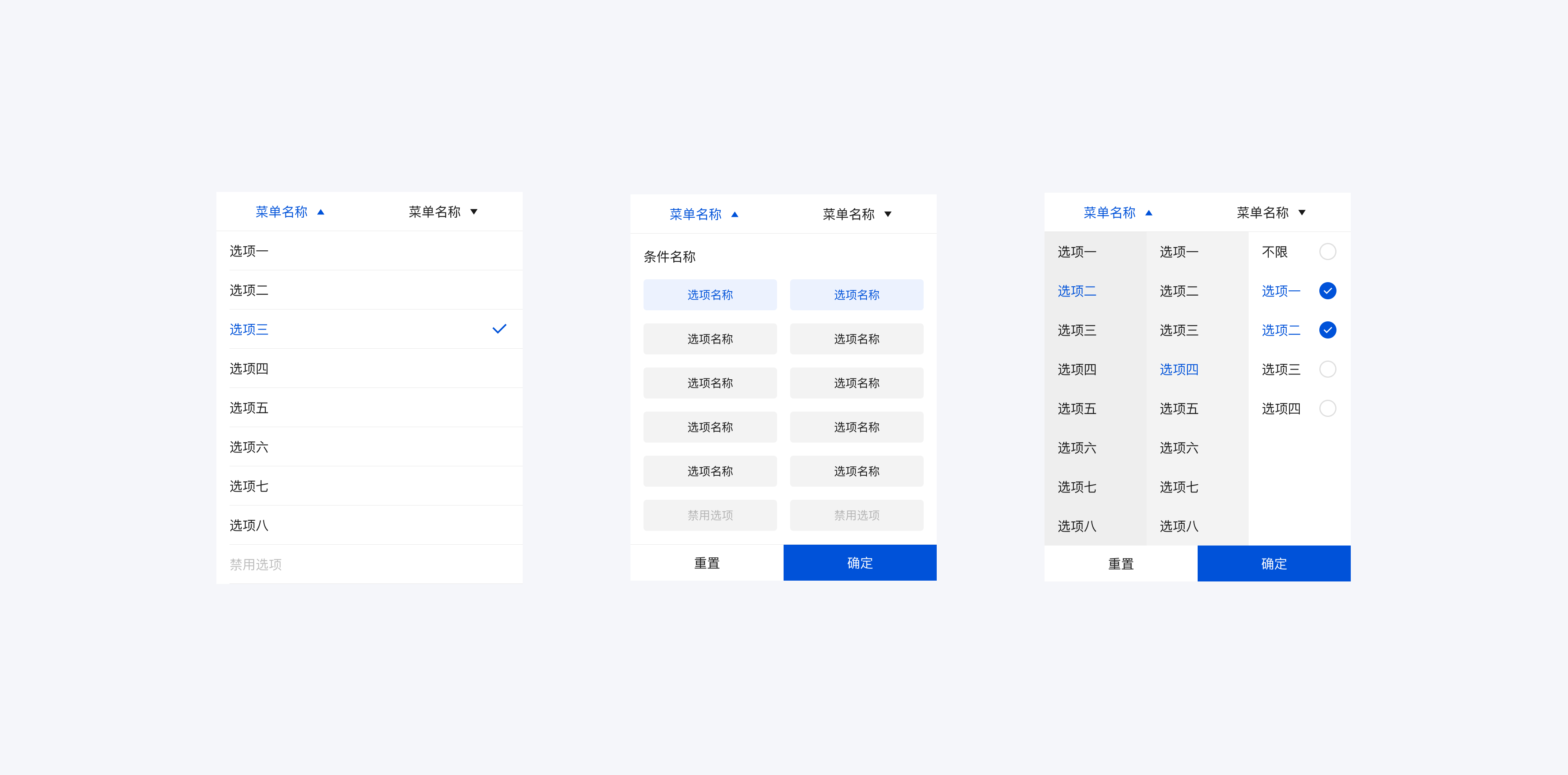 为了便于后续的组件调用,在组件搭建时要特别注意组件的命名规则,一般以总分的形式对其命名,例如:左侧勾选/选择/禁用,这样就能一目了然的知道组件的状态,并便于后期的维护与调用。
