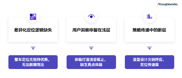 2.用户洞察浅尝辄止:对目标客群的价值观和生活方式理解不深入,主要依赖传统的市场调查方式,无法真正从用户角度洞悉需求和机会点,造成整车体验缺乏亮点,或创新不被用户认可;