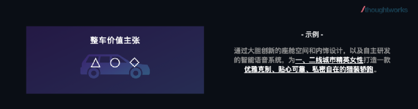 上图:整车价值主张及示例