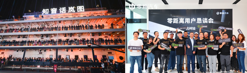左图:岚图包下邮轮举办“用户之夜” 右图:零跑零距离用户恳谈会