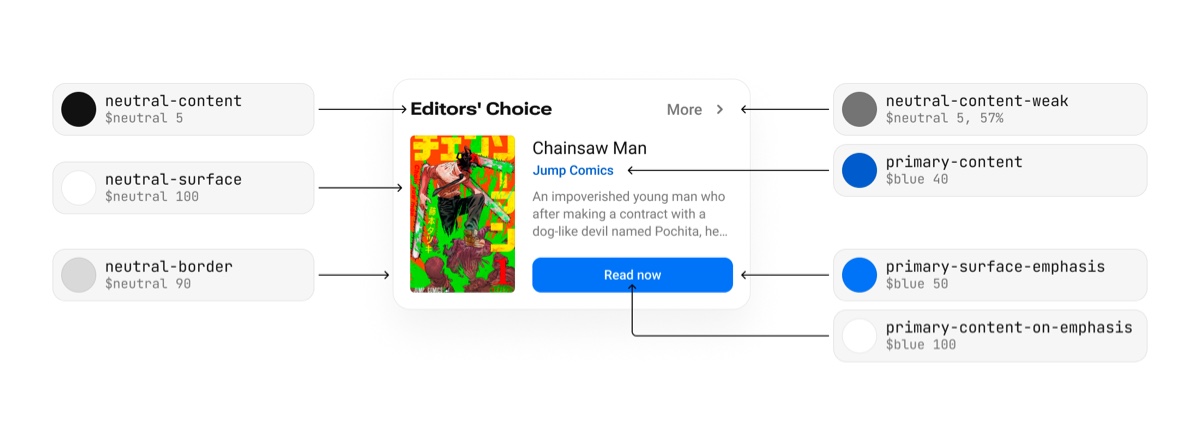 色彩系统最终要给到项目中的其他设计师一起使用,只有准确、符合直觉的语义别名、精简的颜色类型才能有效帮助设计师快速上手整个色彩系统,在产品界面的设计过程中准确使用每一个颜色。除了设计师友好之外,当色彩系统通过 Design Tokens 连接设计与开发时,开发人员也成了色彩系统的用户,因此色彩系统应为所有人而设计,即使没有专业背景也可以学习和理解。