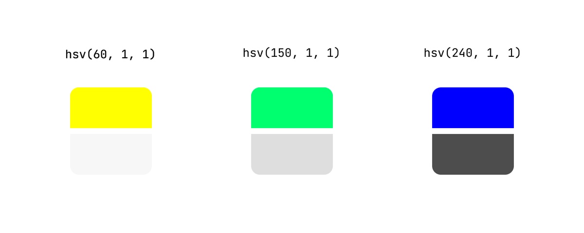 HCT 是 Google 为了更好的色彩呈现,以及更方便的通过程序自动生成色彩,而发明的「全新」色彩空间,H 即 hue 色相,C 即 chroma 色度,可以理解为色彩浓度,T 即 tone 光度,也就是亮度 。