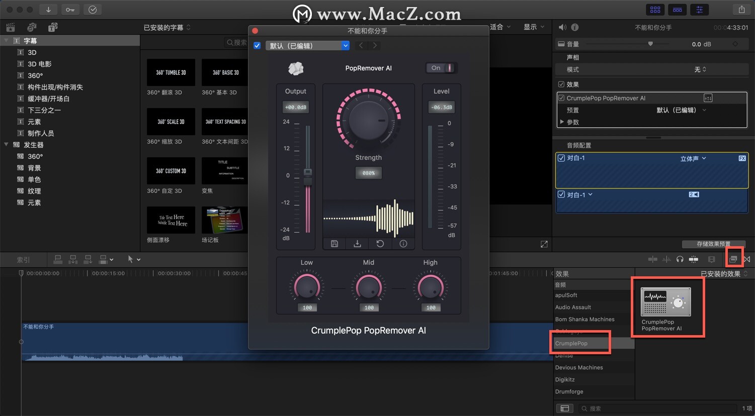 fcpx插件:PopRemover AI(视频爆破音消除插件) v1.0.4激活版