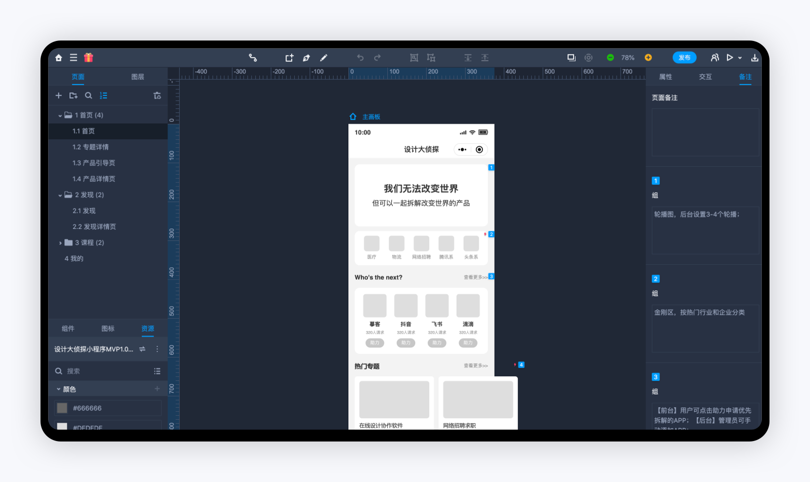 在使用「摹客RP」的实际操作中,我发现它的流畅度是我最惊喜的收获。我还从未使用过如此流畅的国内在线协作软件,几乎0卡顿,操作非常快捷。这也让摹客RP的学习成本非常低,我只花了3天,就从0到1完成了一个10个页面的原型设计稿,效率非常高。