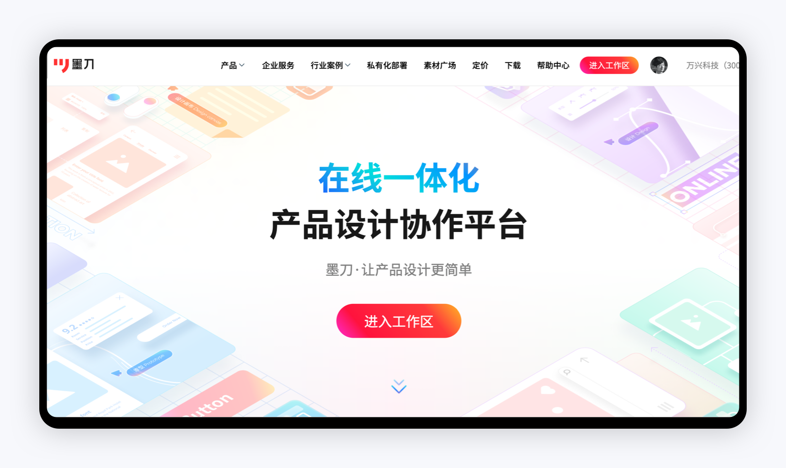 「墨刀」成立于2014年,是国内发展最早的原型设计工具,在2017年6月推出的V3.0版本就以“团队协同”的产品理念设计。墨刀旨在打造一个在线一体化的产品设计协作平台,也就是把原型设计、设计协作和UI设计这三大场景融入一体,拉长用户生命周期,降低用户流失率。
