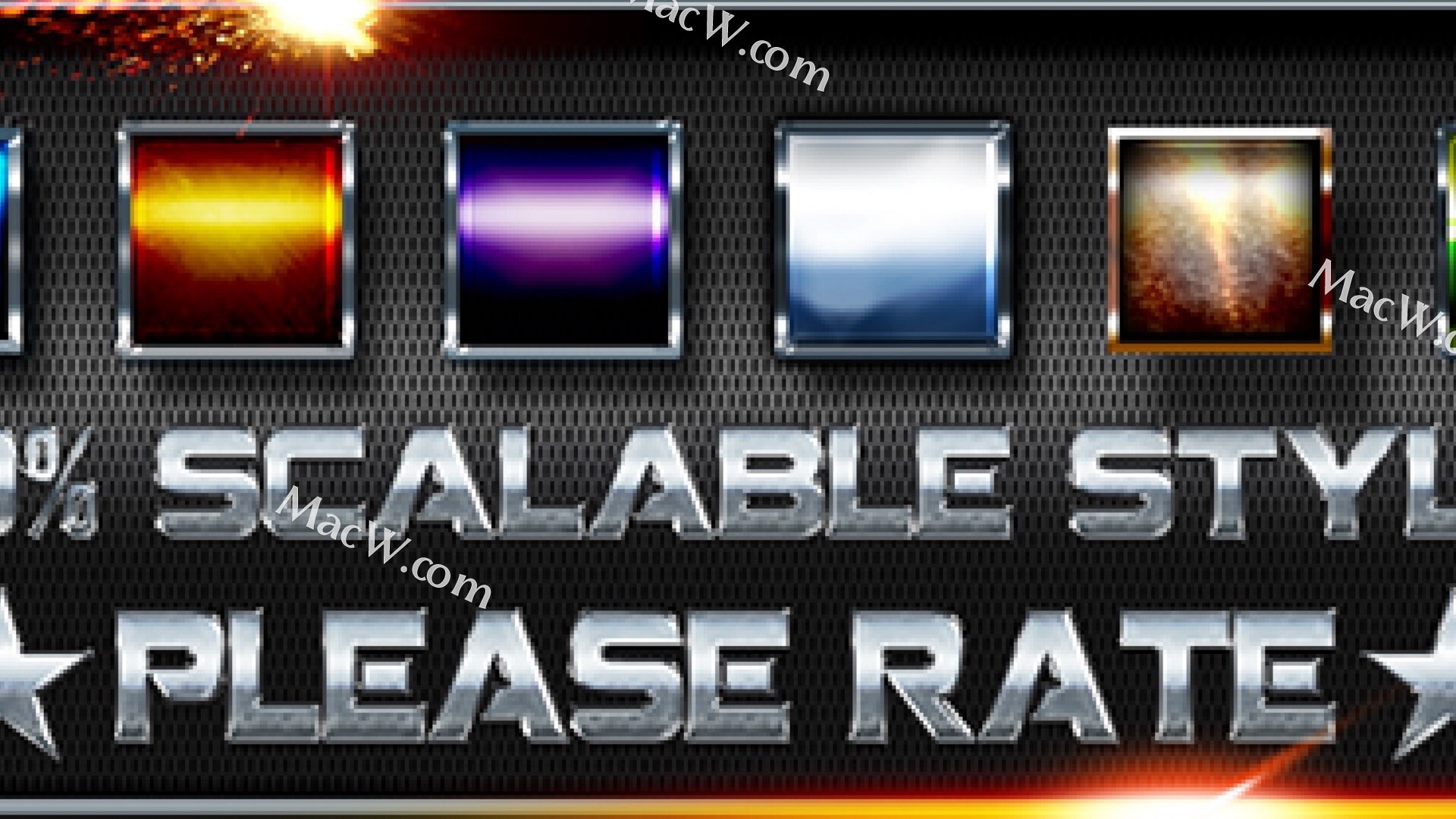 高品质闪亮金属效果ps样式中包含了6种闪亮金属字体ps样式,适用于多个版本的Photoshop