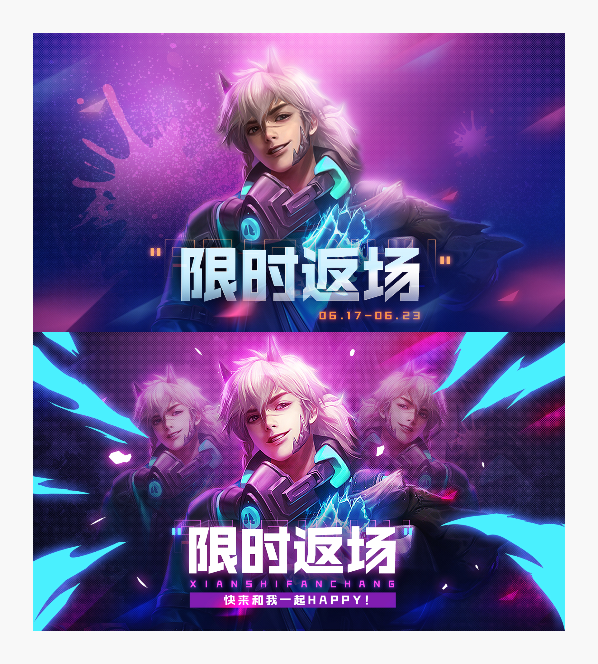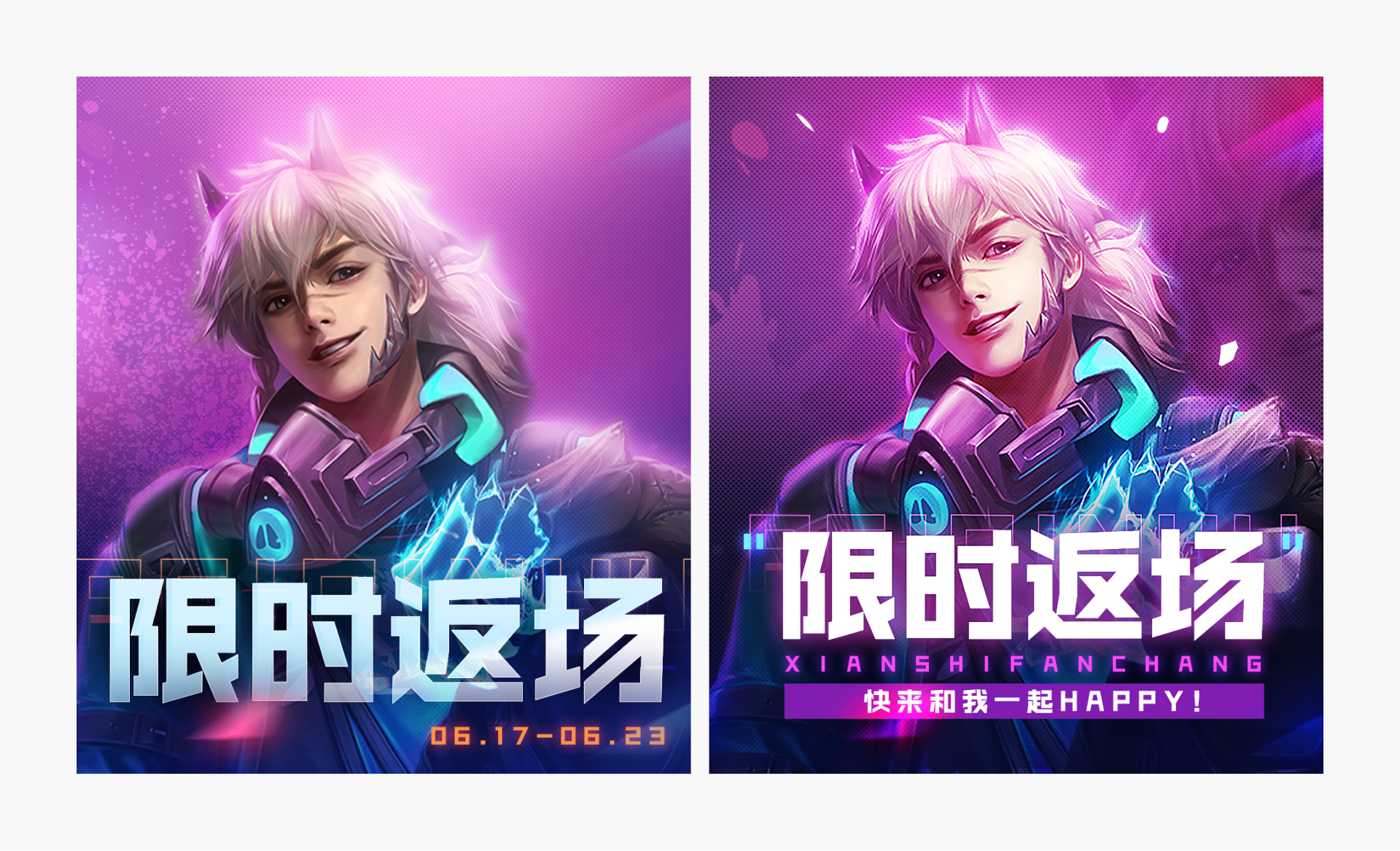 字体颜色同理,整个画面都是紫色为主,但是字体是一个单独的蓝色,就会显得有点脱节。所以把字体颜色改成紫色光,就统一多了: