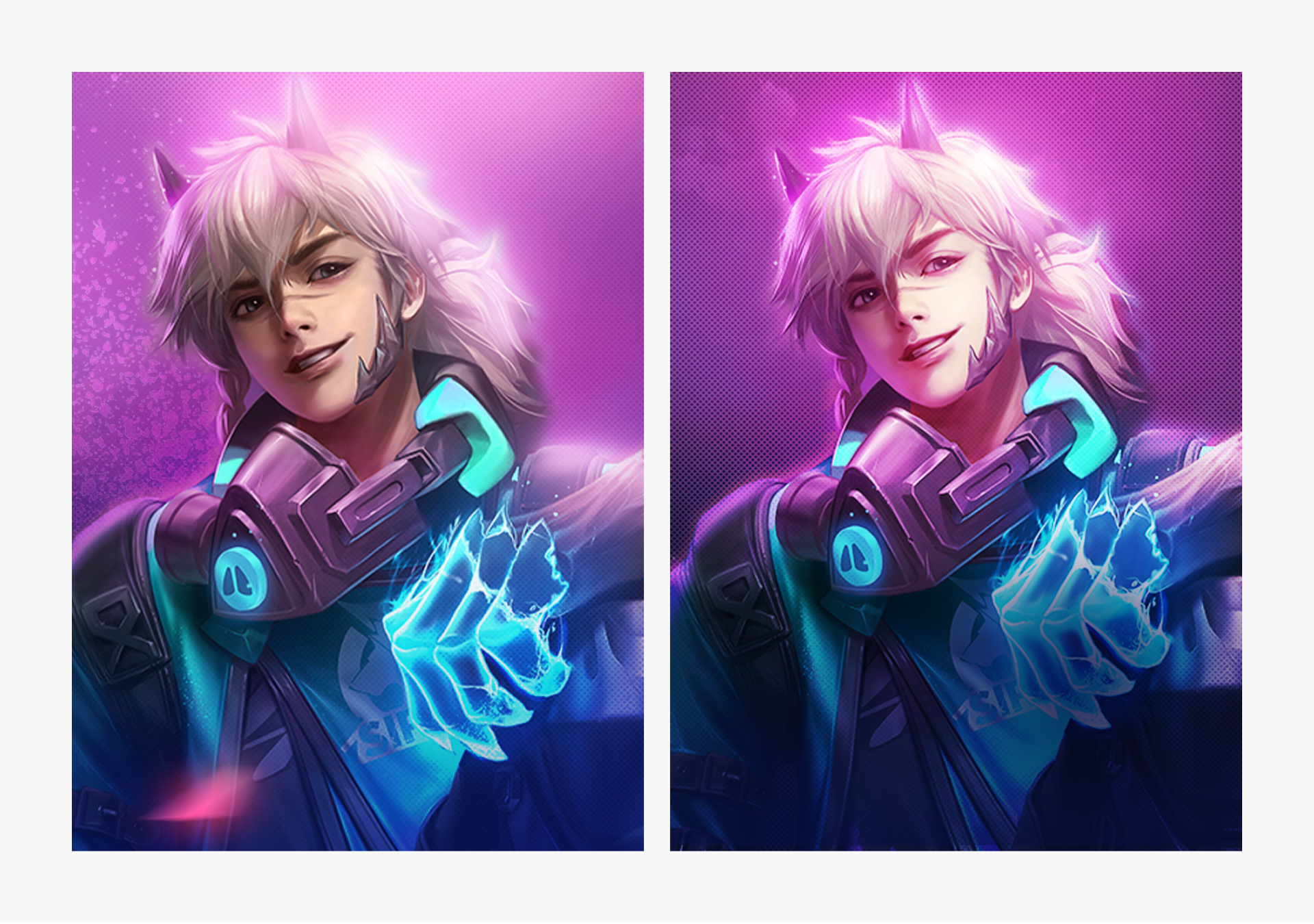 有了大块面的元素,我们还可以加入一些小巧的元素点缀画面,比如火花、光点之类的。可以起到衔接画面的左右,也能进一步丰富画面细节: