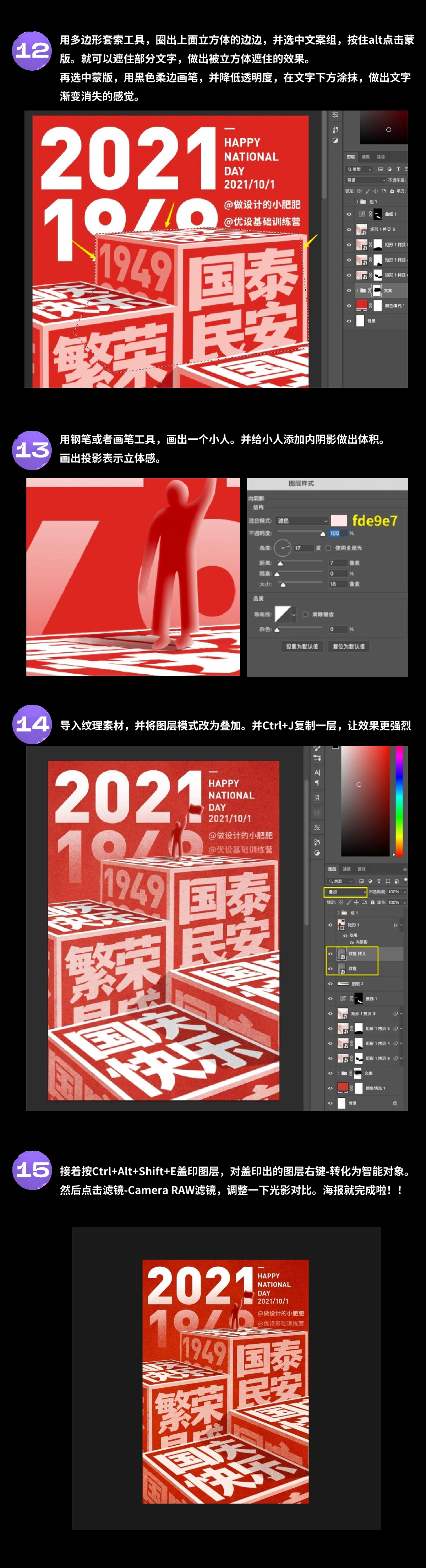 我们以下面的国庆海报为例,来学习一下制作方法。(方法并不唯一,大家选择最方便的即可)。以下是具体的制作教程。