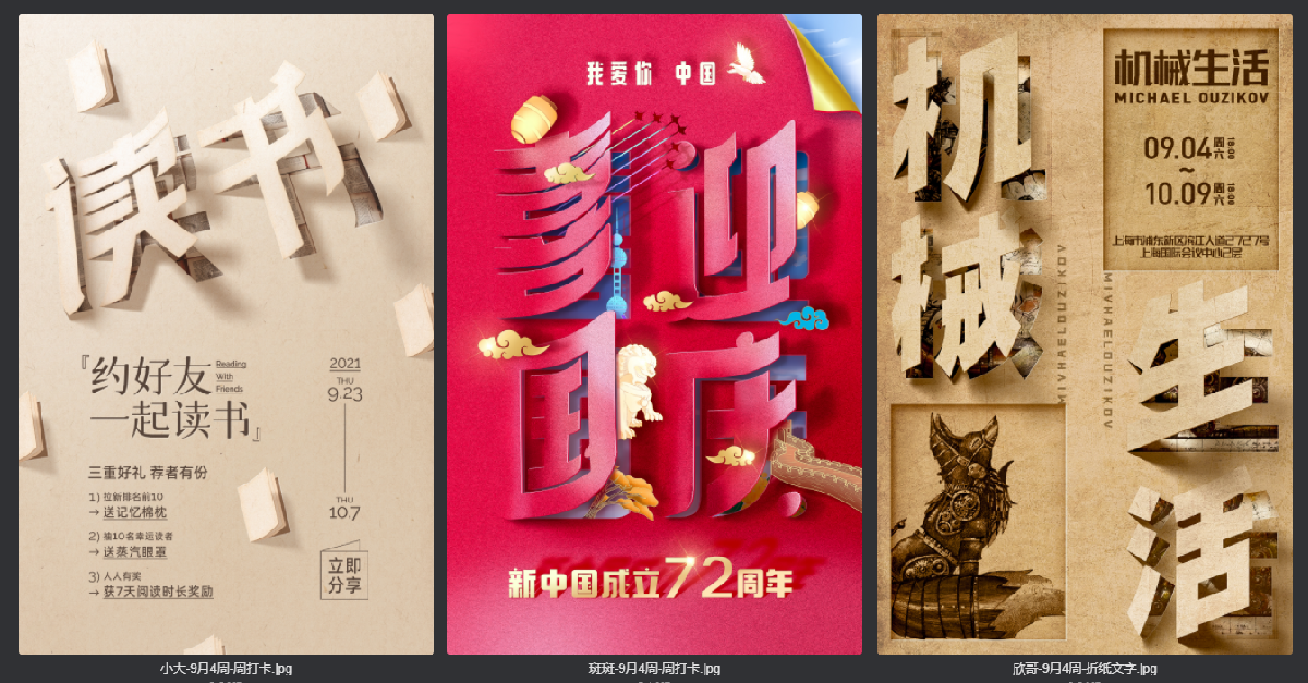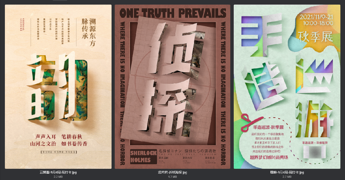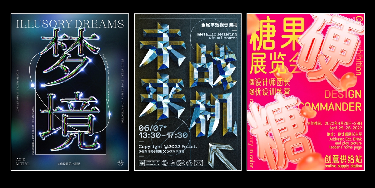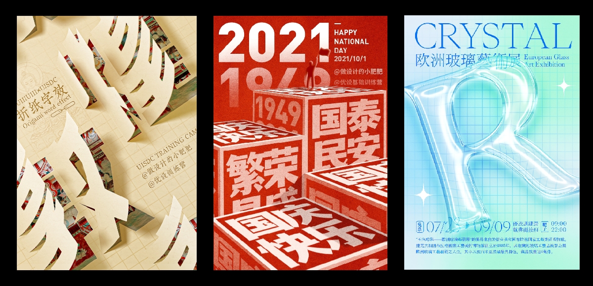 第二个方式,就是使用图层样式,给字体增加体积。比如以下这些海报,都是使用图层样式制作。