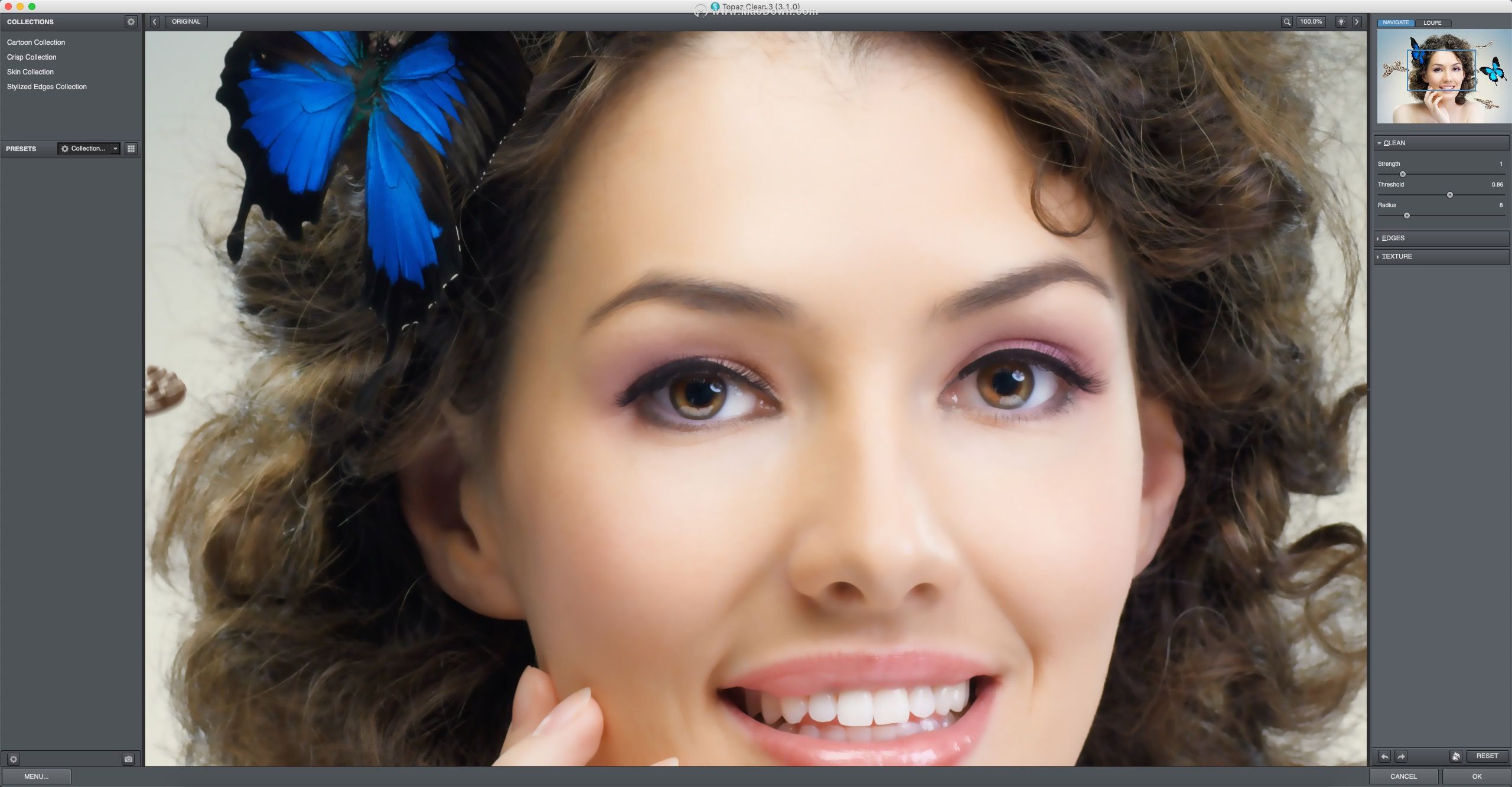 Topaz Clean可帮助您使表面看起来很棒,同时仍保留原始纹理和细节。 使用它可以让肌肤看起来更加自然......在你的风景中创造出深层流动的水......为汽车添加令人惊叹的光泽......等等。