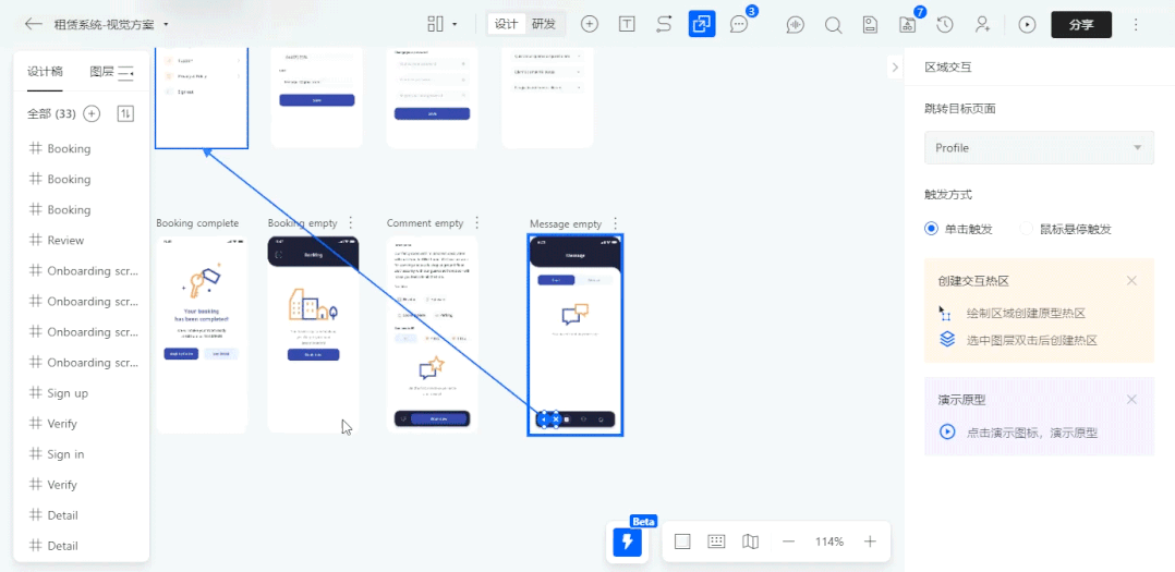 不管设计稿画板再多,你都可以在设计模式中体验到一键制作交互原型的流畅体验。