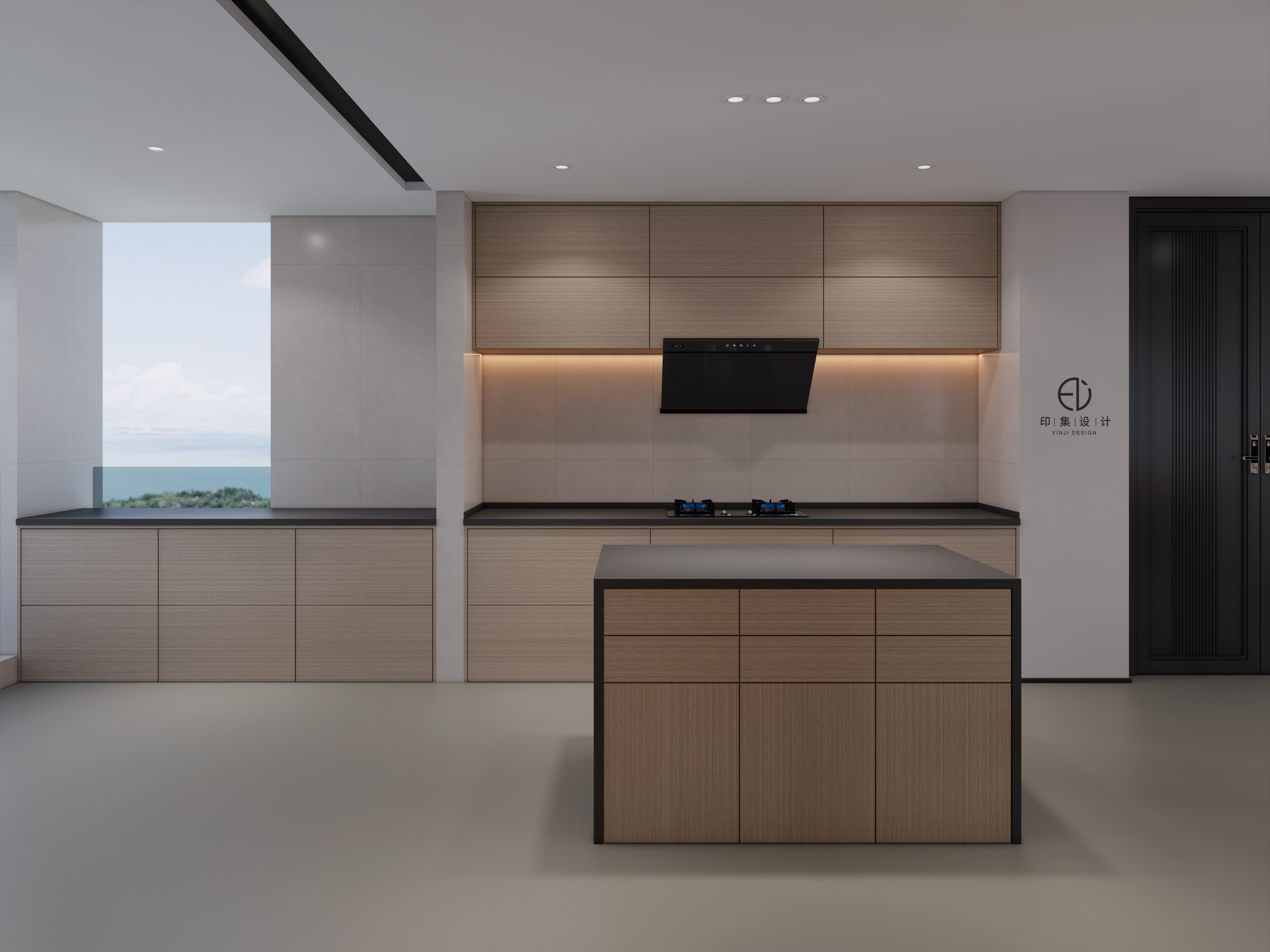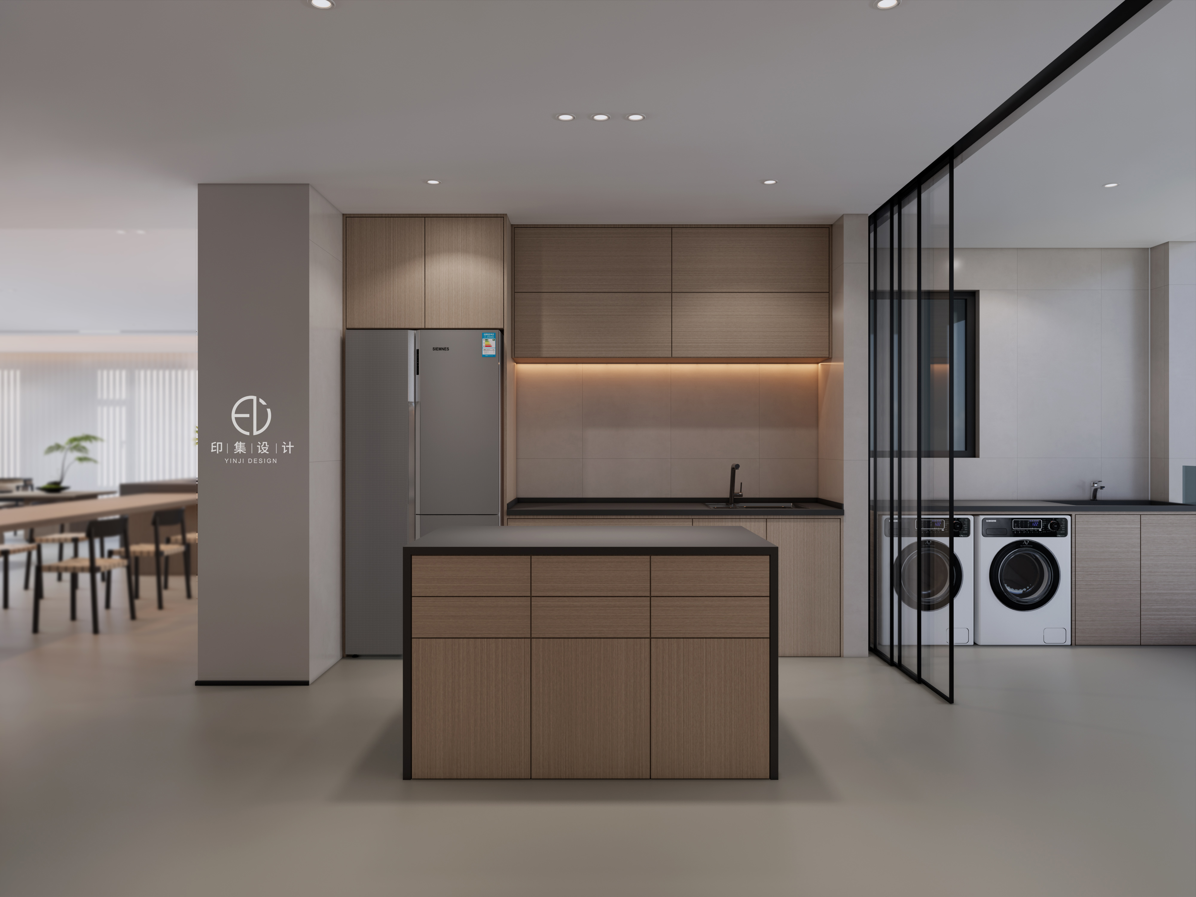 厨房与生活阳台间安装吊轨门,采光佳、整体性强、美观度高、便于打扫。开放式中西双厨设计,通透敞亮,空间延伸感强。