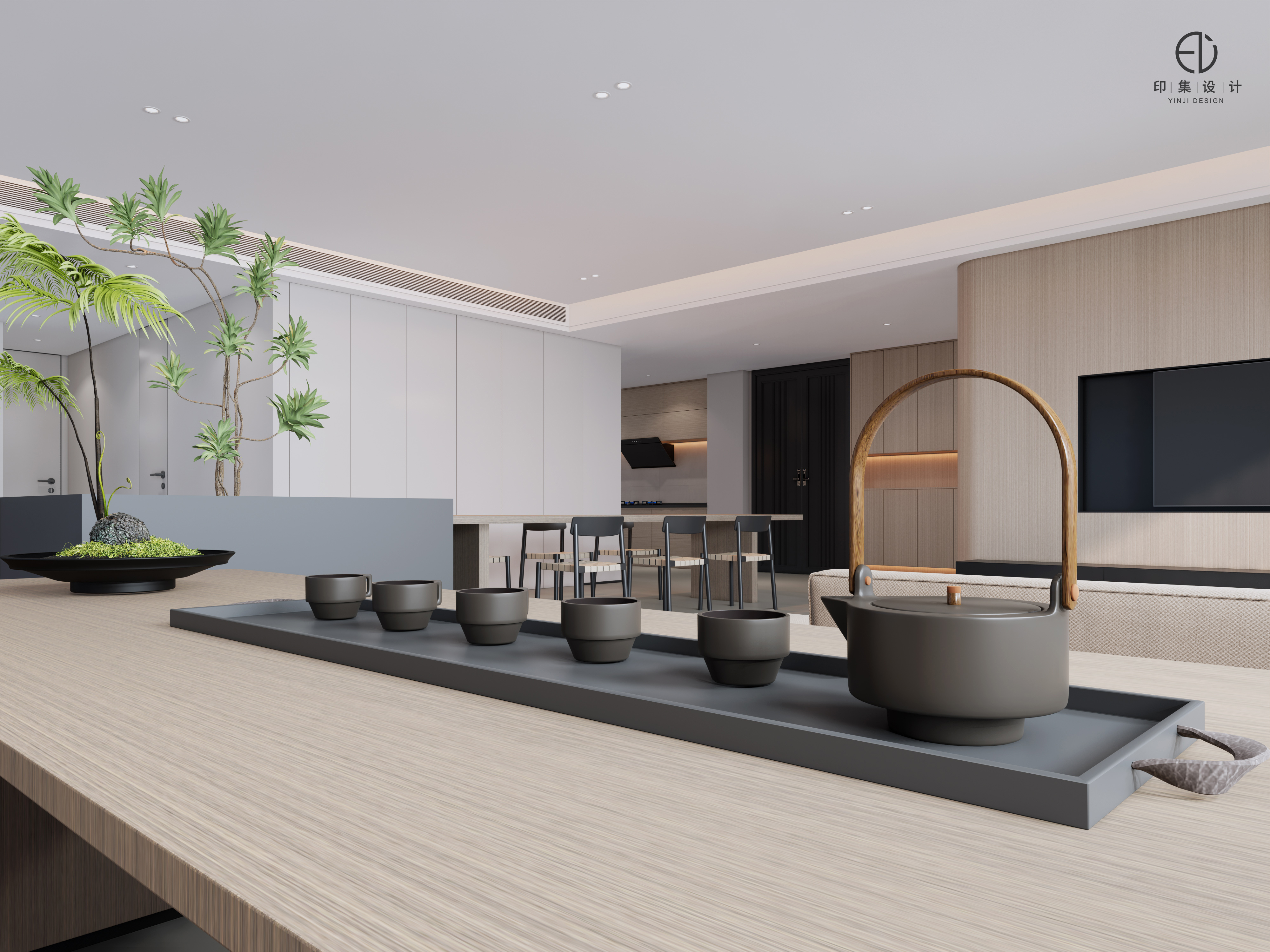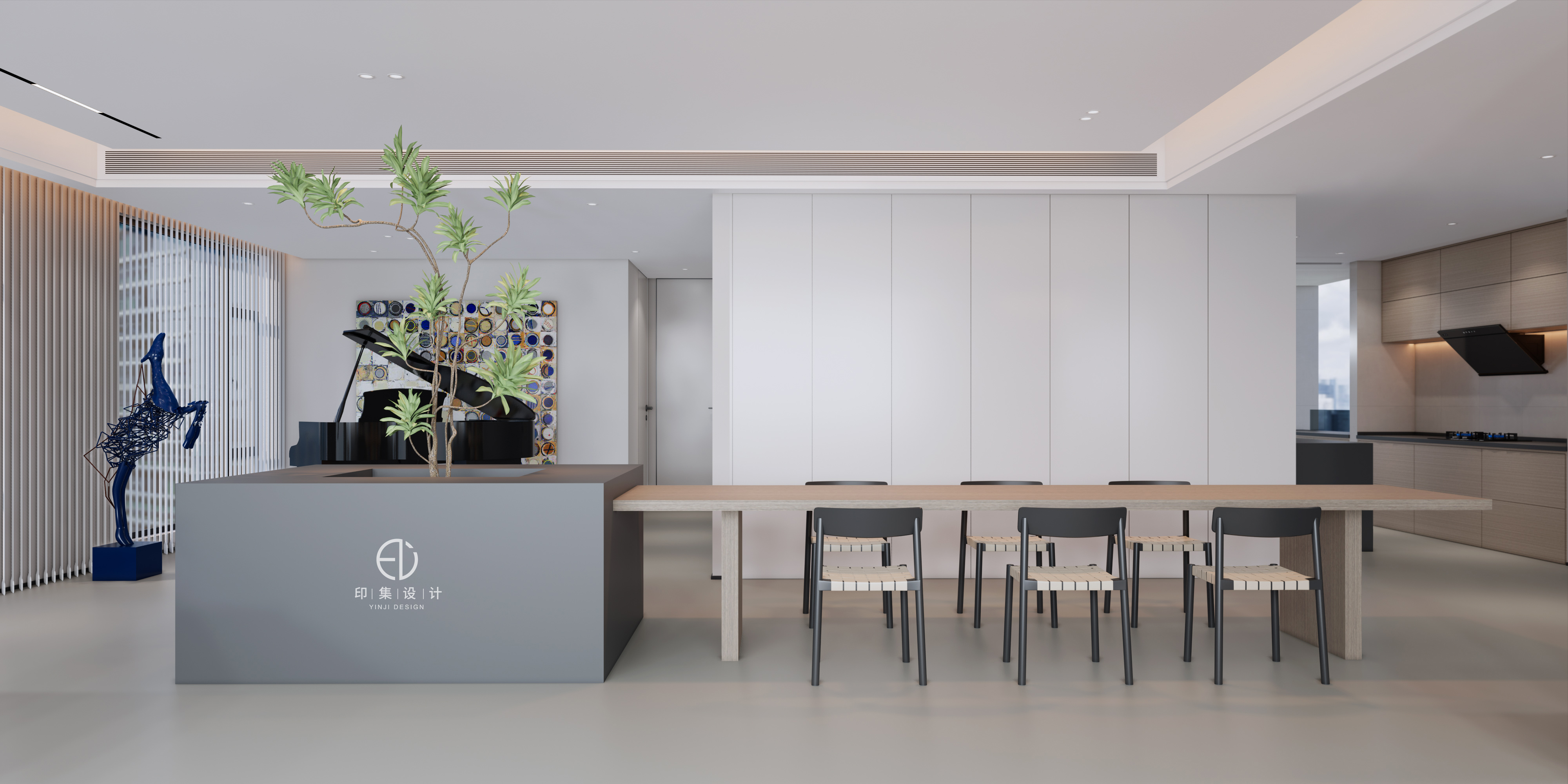 西餐台与景观造型一体,独具特色。一侧承接餐桌,超大用餐空间,可满足多人同时落座。