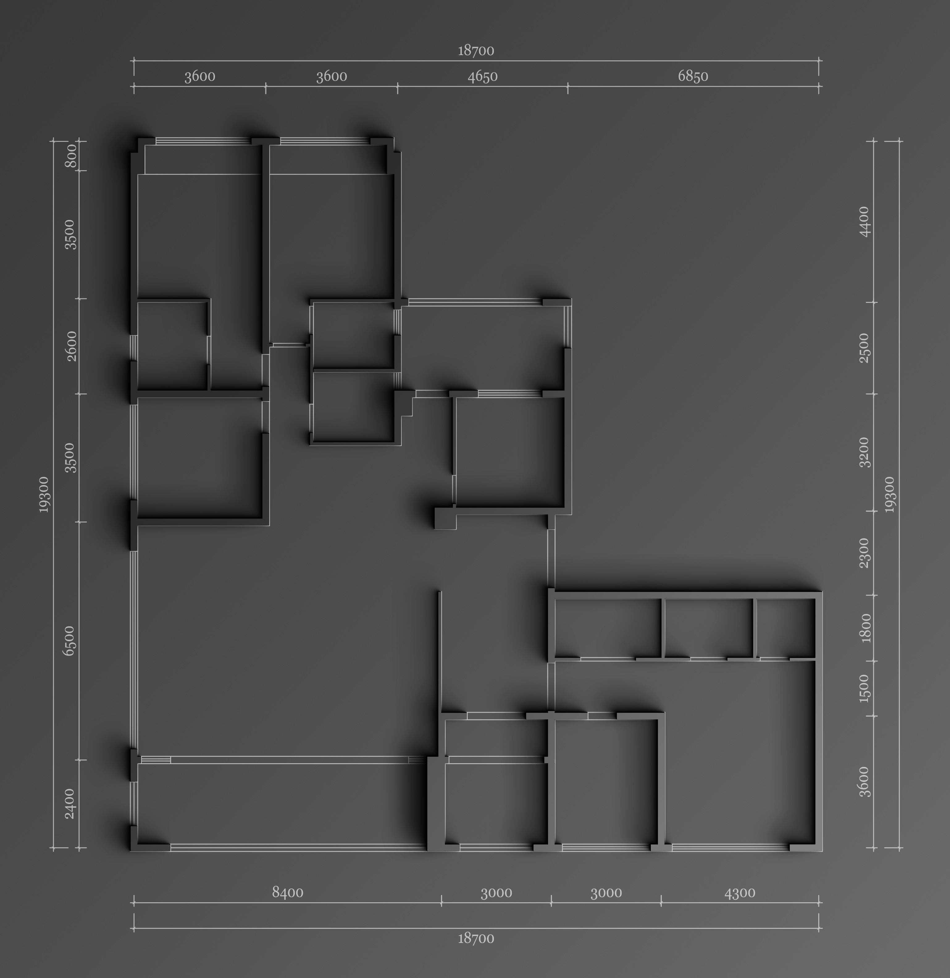1、将门厅、阳台及书房的墙体调整打开,打造宽大的客厅、完善配套功能。