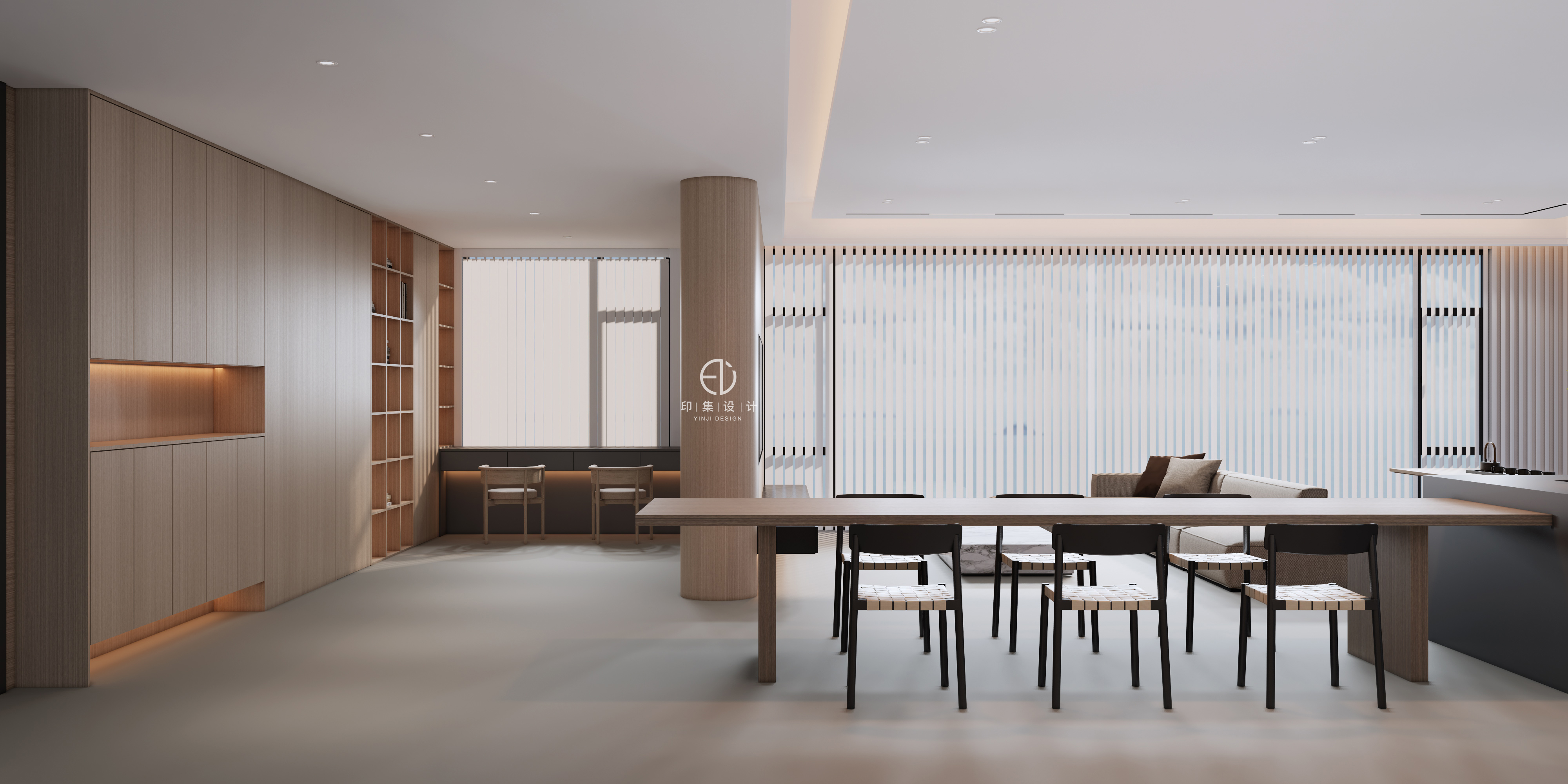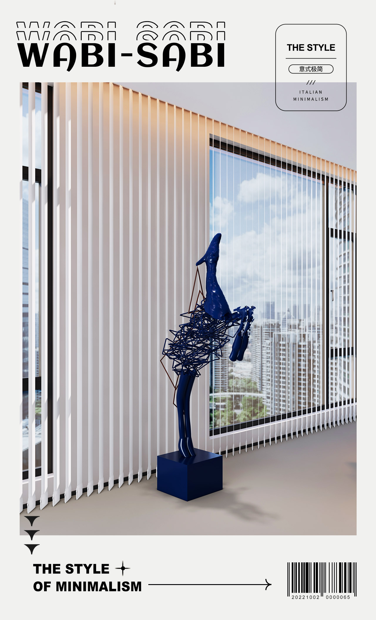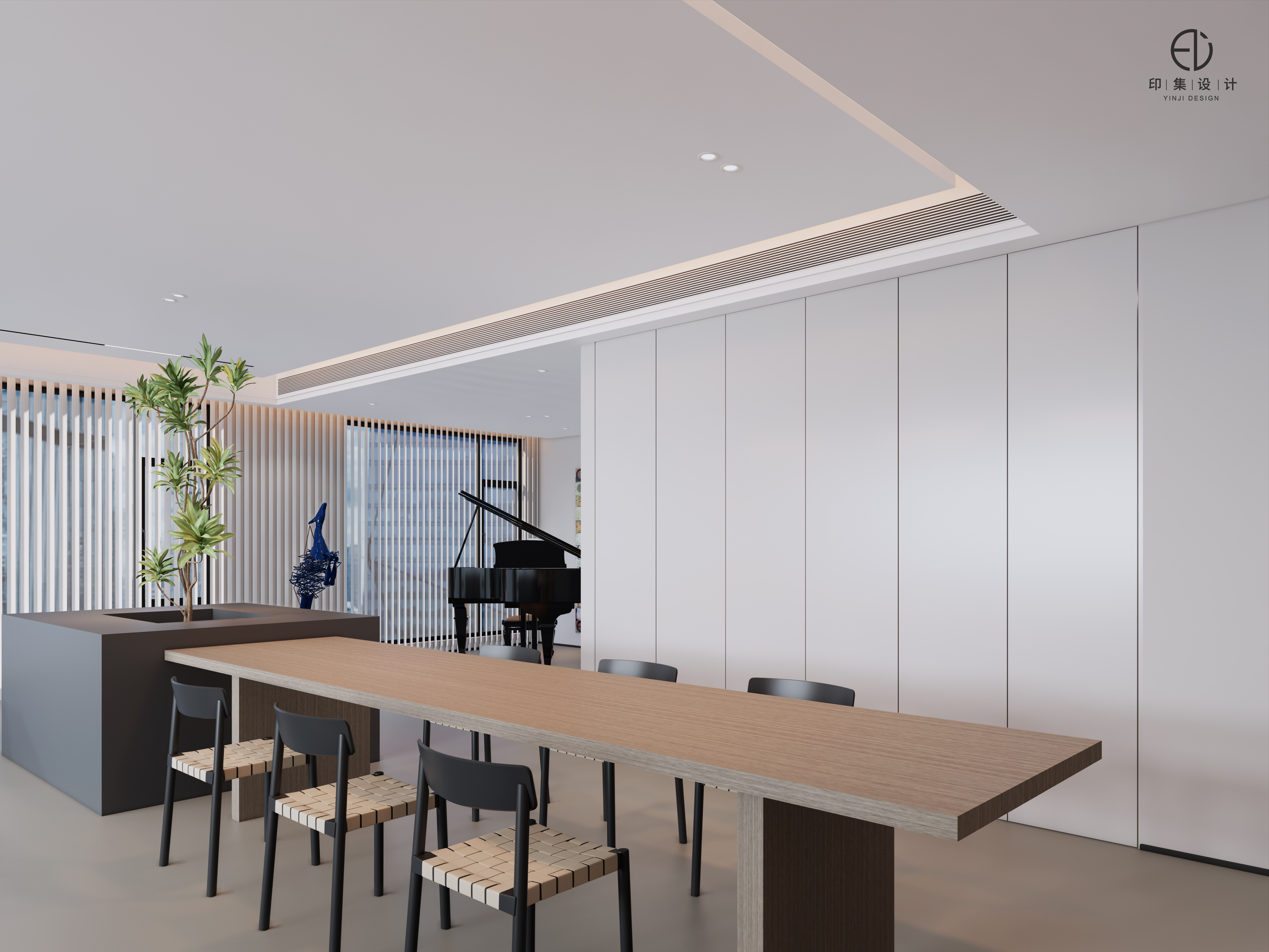 线条的竖直之美在这里呈现。竖线干脆硬朗,简洁纯净,整体空间更加深邃立体。